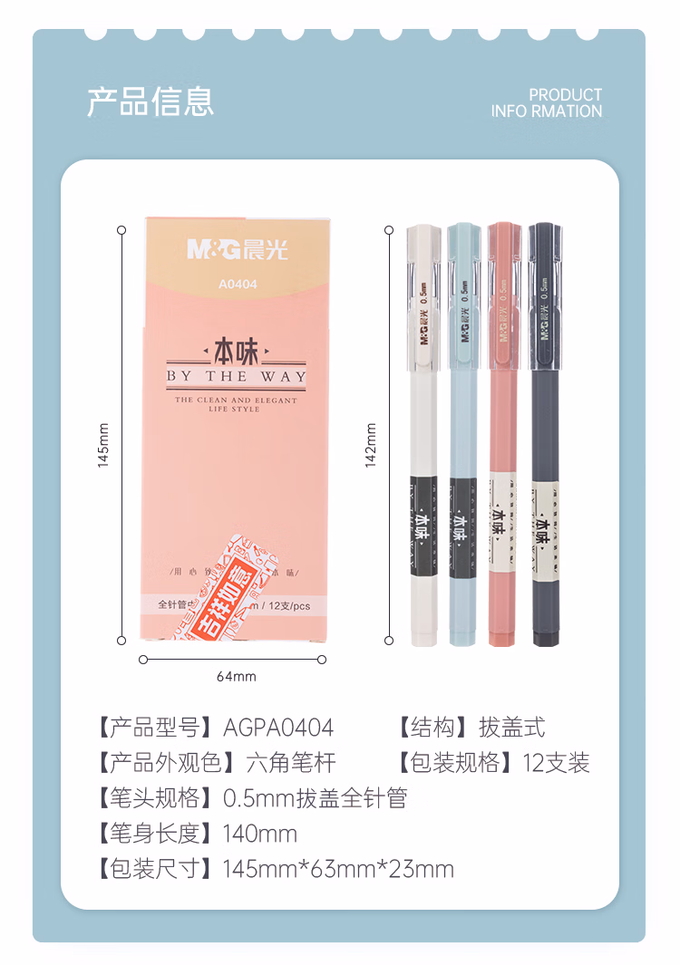 包装清单  :   晨光(M&G)文具 拔帽中性笔0.5学生黑笔签字笔商务全针管水笔办公用品 黑色 12支/盒