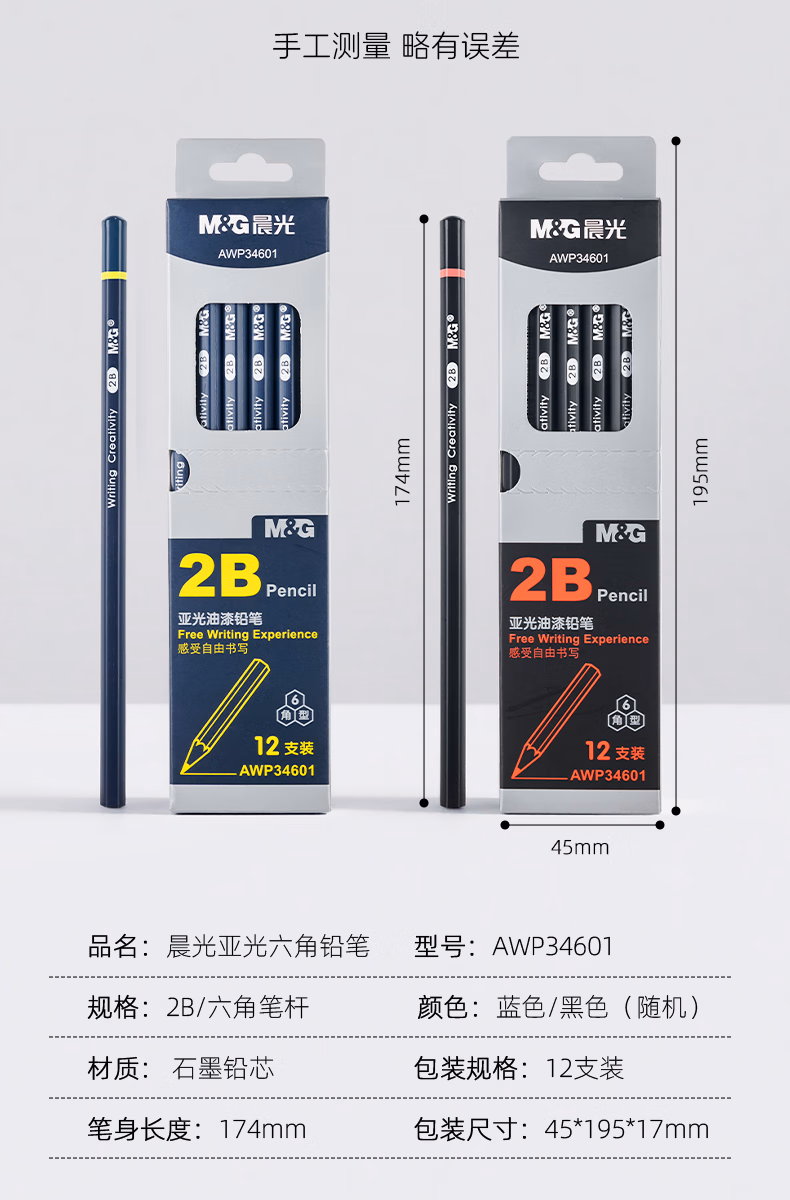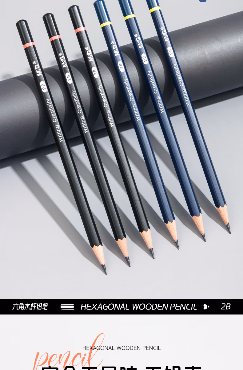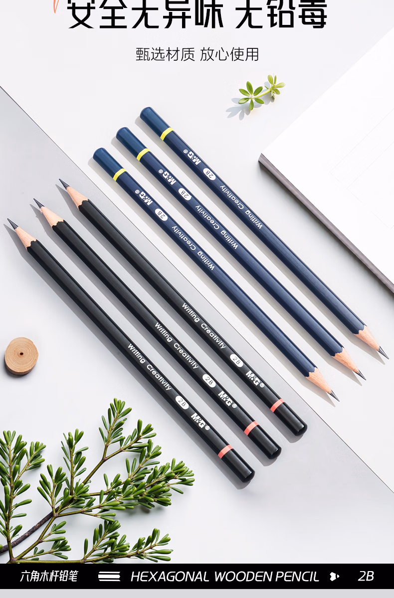 包装清单  :   晨光(M&G)文具2B六角木杆铅笔12支 哑光油漆铅笔 学生书写美术素描绘图木质铅笔 颜色随机AWP34601