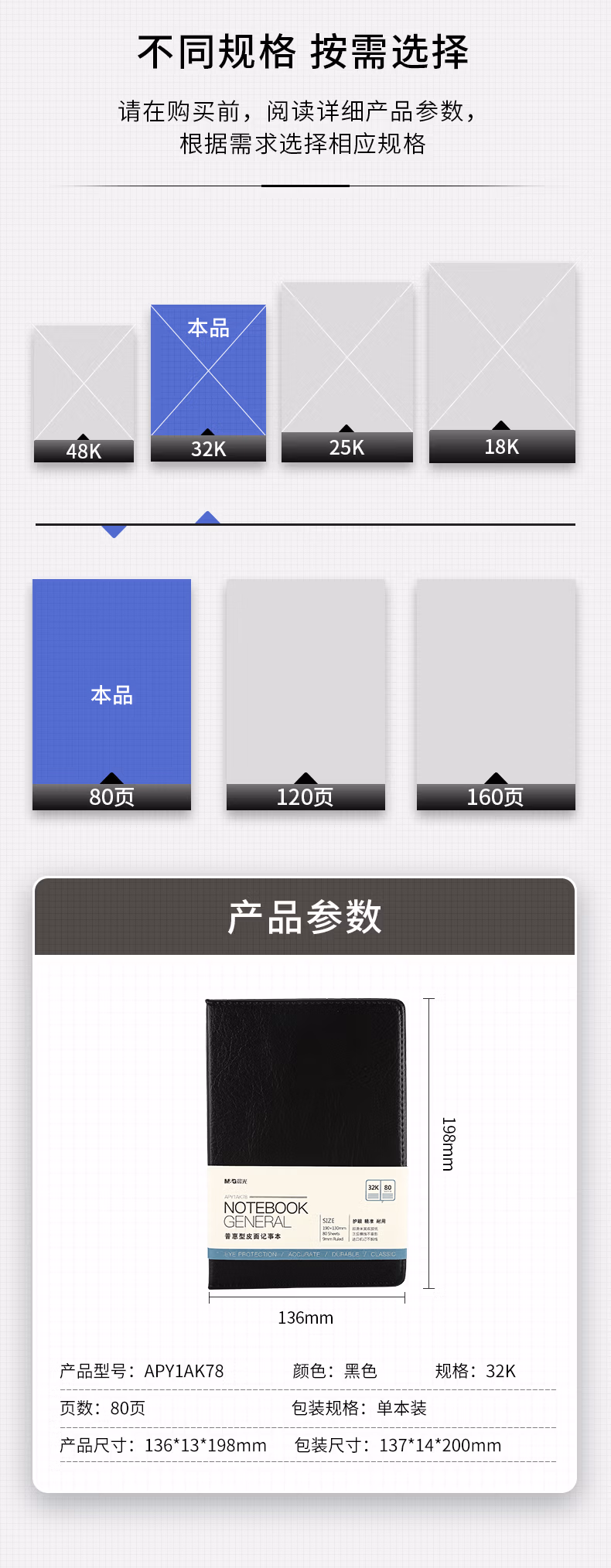包装清单  :   晨光(M&G)文具黑色软皮革面笔记本本子开会办公用品会议记录本普惠型日记本记事本商务32K/80张单本APY1AK78