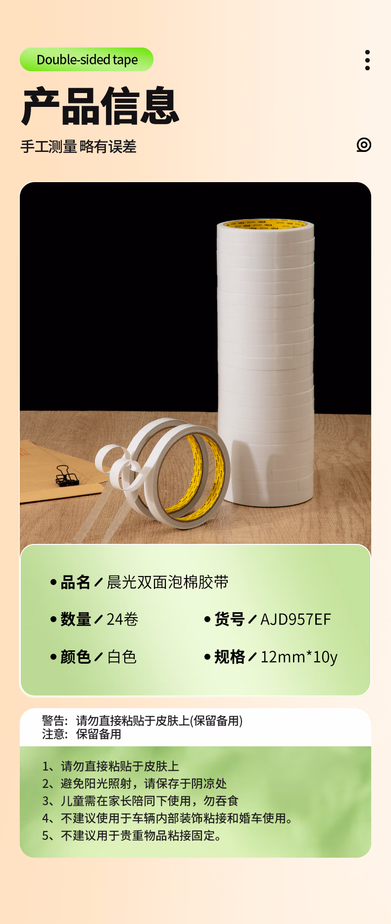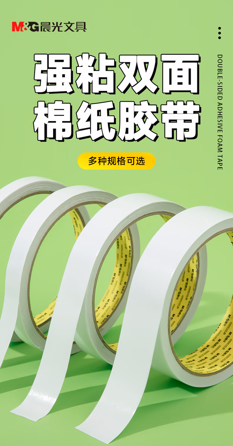 包装清单  :   晨光(M&G)文具高粘性棉纸强力双面胶带12mm*10y 办公用品 24卷 开学必备学生文具 强力高粘度AJD957EF