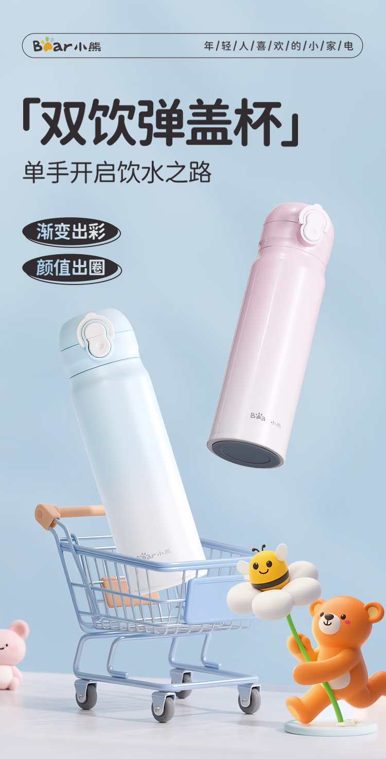 包装清单  :   小熊(Bear)保温杯 316L不锈钢水杯 双饮带吸管 弹扣杯男女生480ml