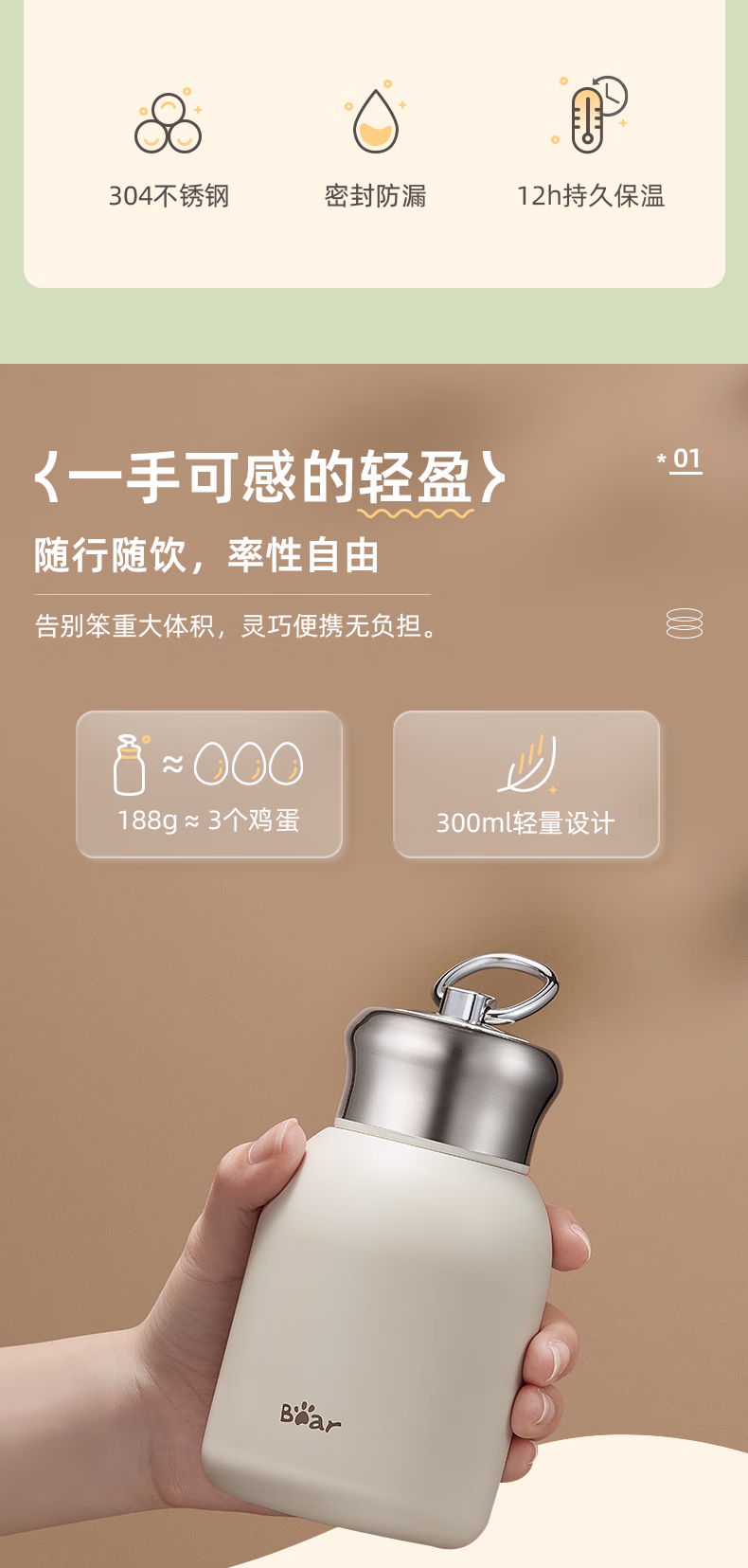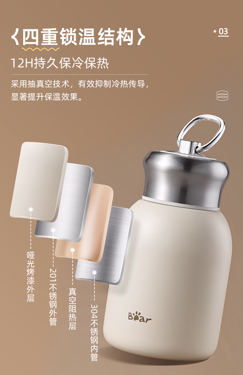 包装清单  :   小熊(Bear)保温杯304不锈钢 便携保冷杯小容量水杯学生男女士杯子儿童300ml