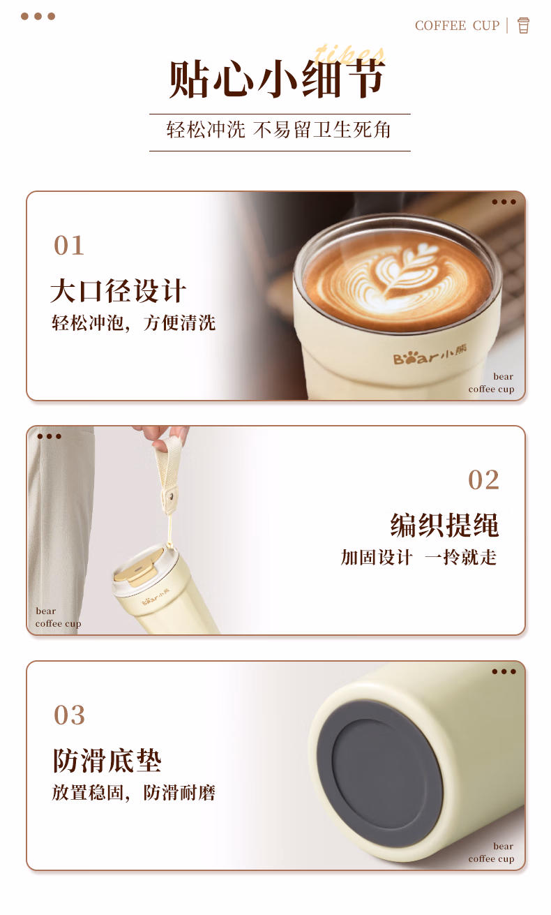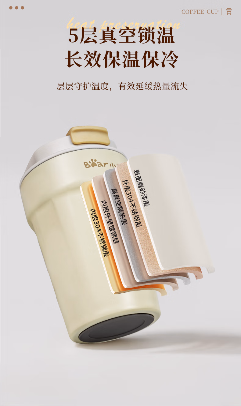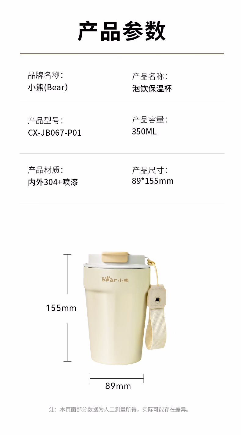 包装清单  :   小熊(Bear)保温杯 咖啡杯304不锈钢便携学生男女士杯子350ml