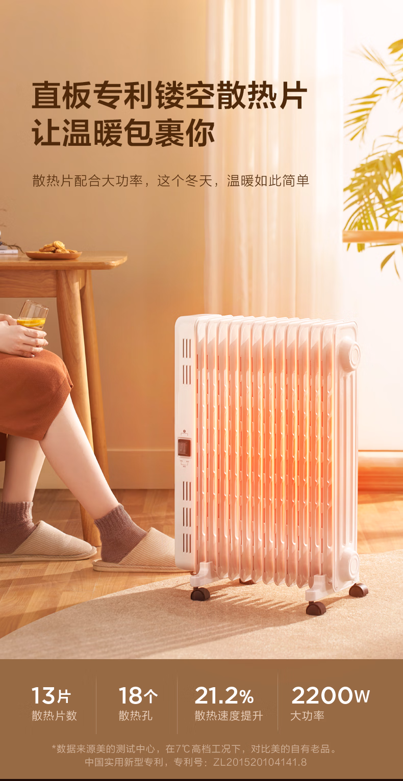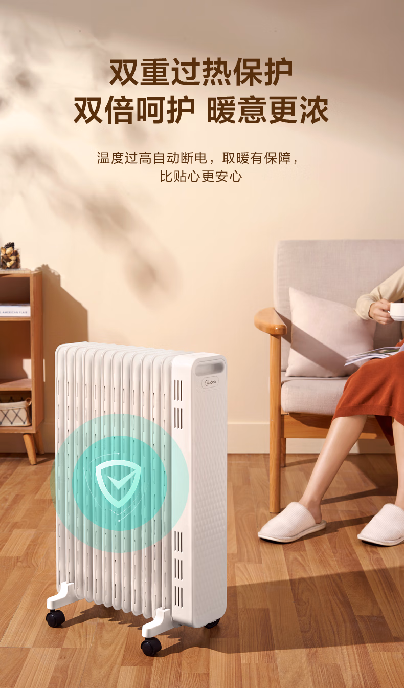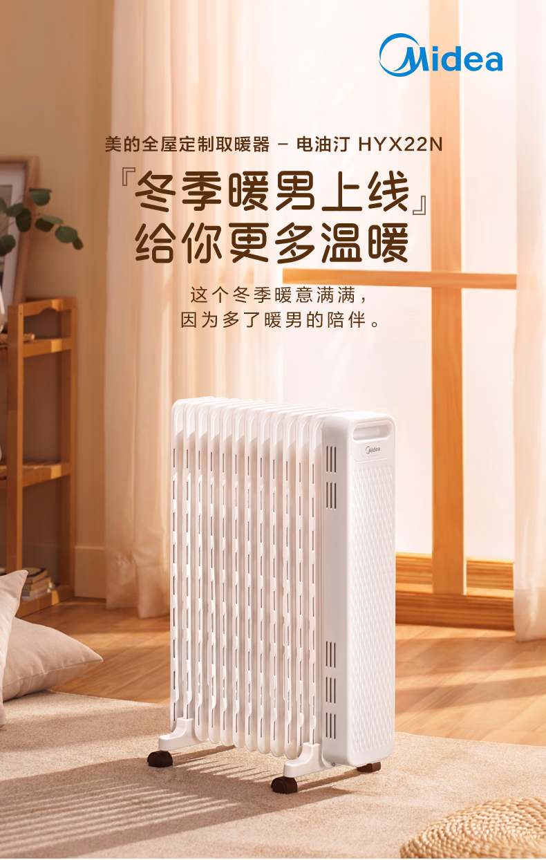 包装清单  :   美的(Midea)【白玉】取暖器/电暖器/电暖气家用/烤火炉/13片节能速热/电热油汀/油酊/加热器/烘衣加湿HYX22N