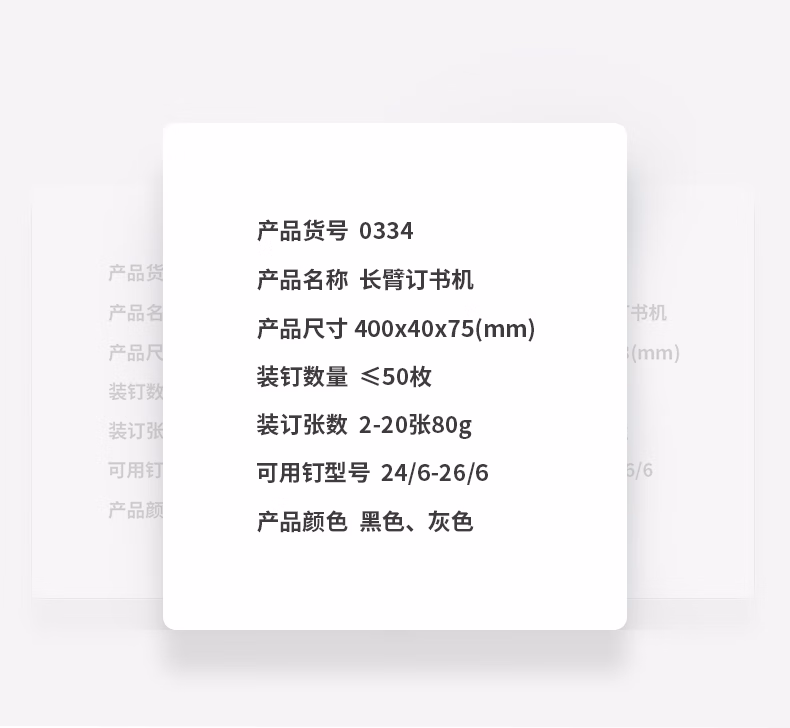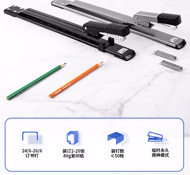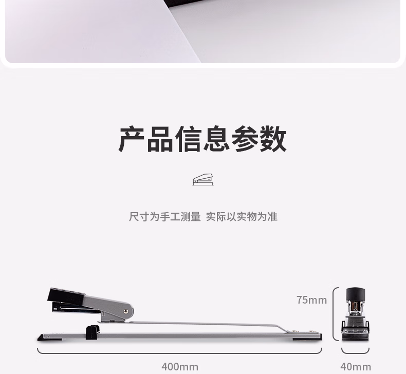 包装清单  :   得力(deli)12#长臂订书机 重型厚层加厚长臂订书器 中缝可订 打印装订财务 办公用品 0334