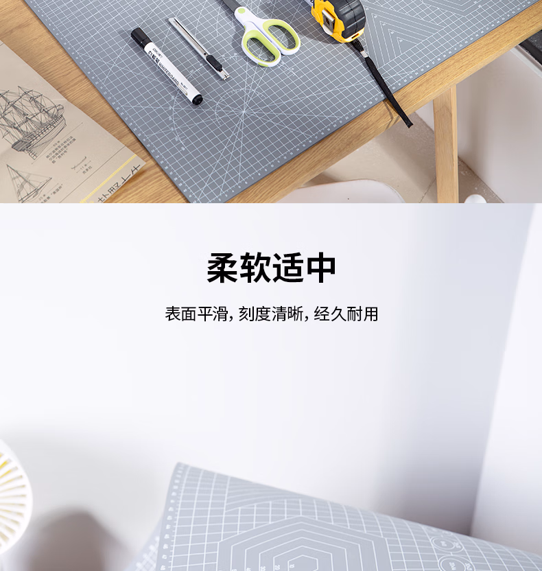 包装清单  :   得力(deli)A2耐用PVC切割垫板桌垫/鼠标垫/书写垫 超大号可水洗手工桌面刻板裁纸美工垫 灰色78402