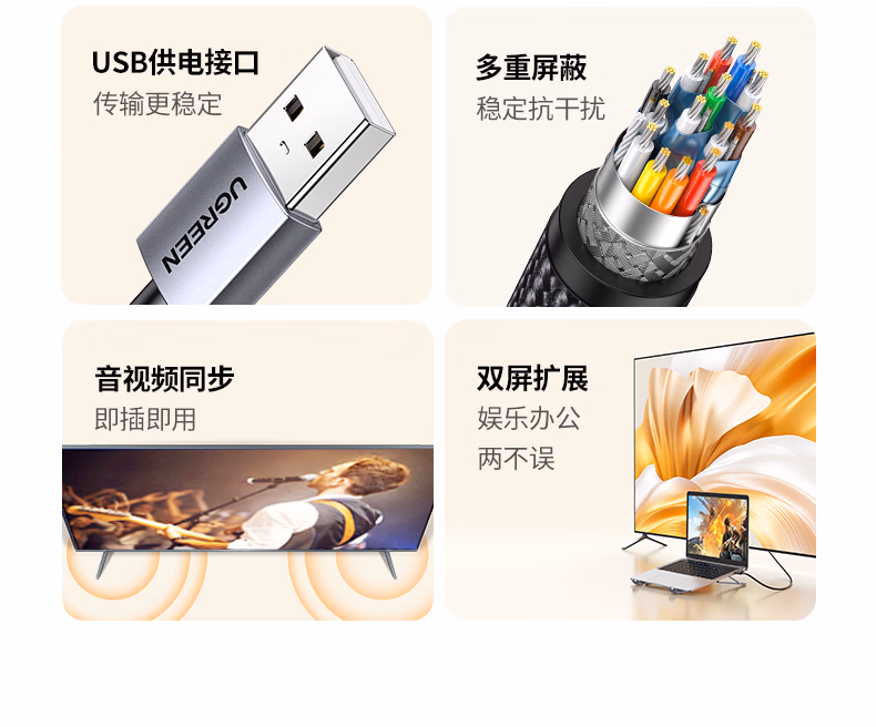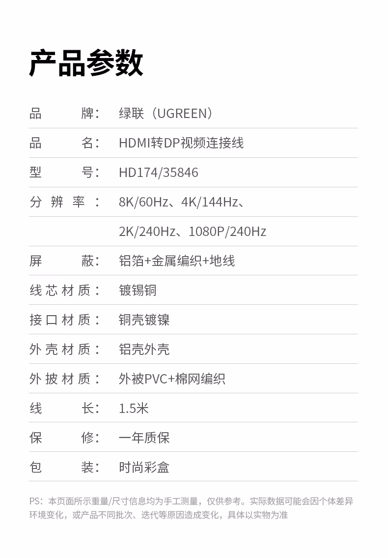 包装清单  :   绿联HDMI2.1转DP1.4转接线头Displayport公8K60Hz视频连接线 笔记本电脑接显示器转换器线1.5米35846