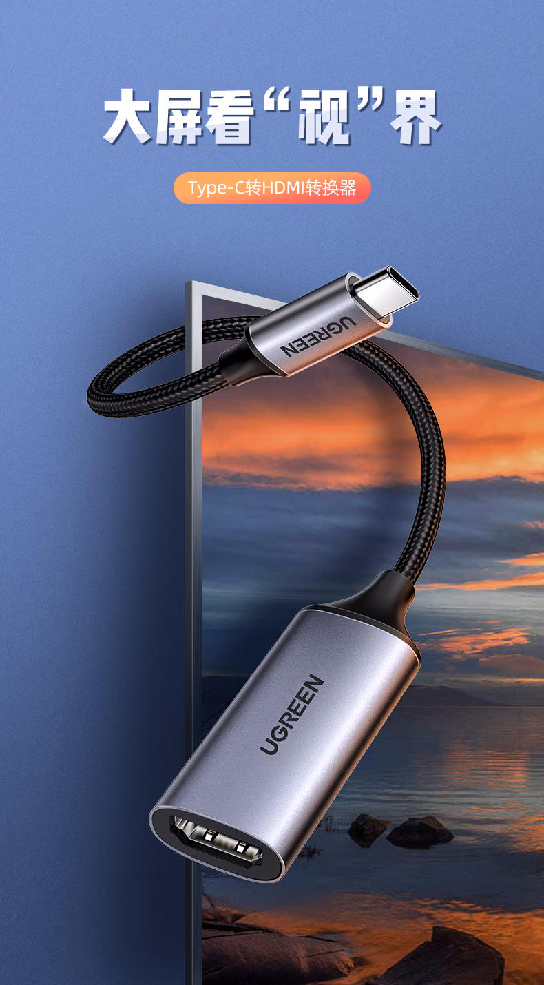 包装清单  :   绿联Type-C转HDMI母转接头雷电4/5线转换器高清4K60/2K144Hz投屏USB-C扩展适用MacBook/iPadAir笔记本