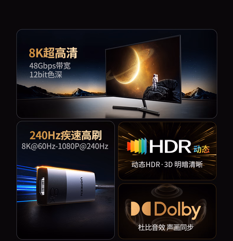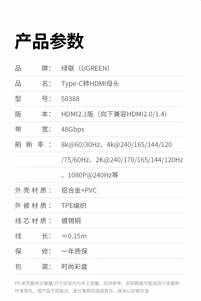 包装清单  :   绿联Type-C转HDMI2.1母转接头转换器线雷电4/5扩展高清8K60/4K144Hz投屏适用MacBookAir笔记本手机iPad