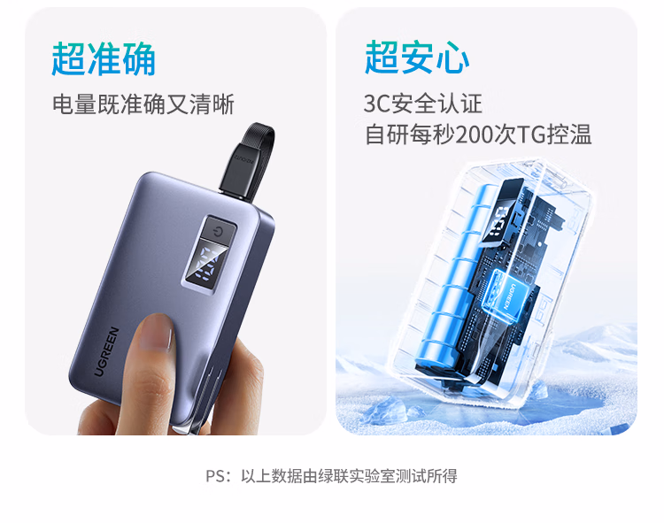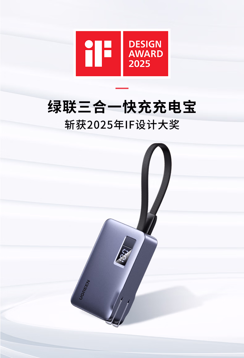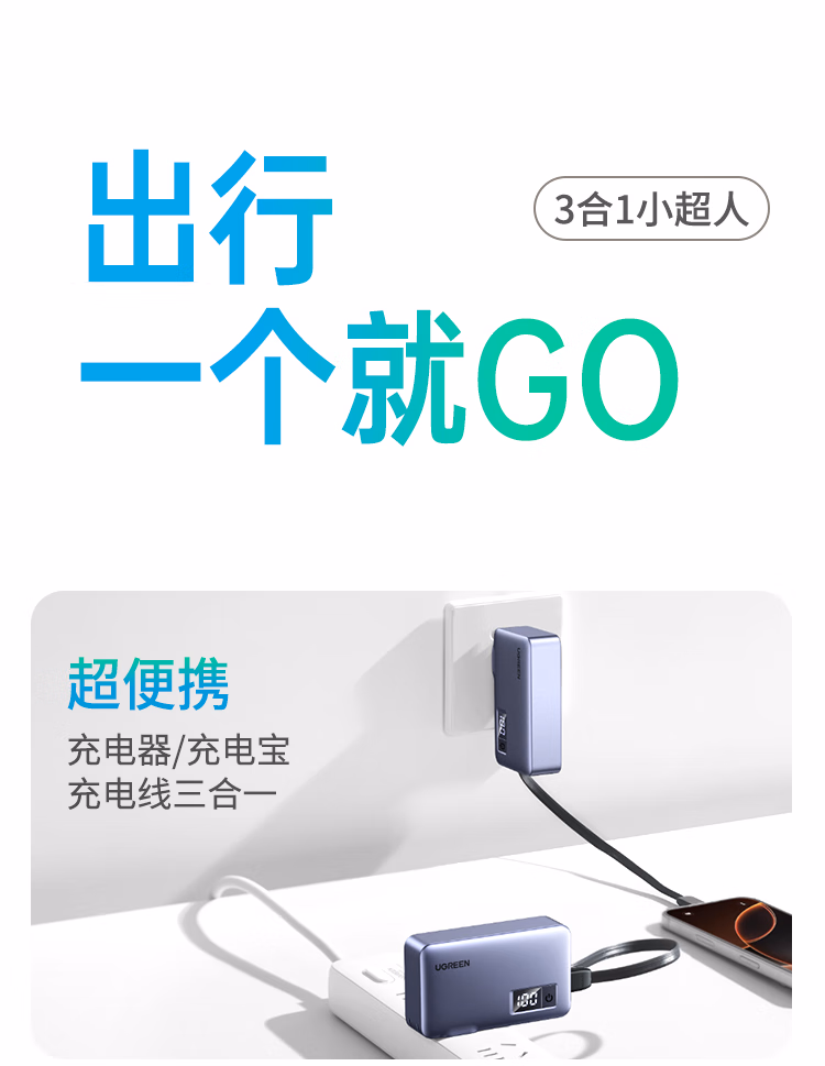 包装清单  :   绿联【3C认证可上飞机】三合一充电宝自带线带插头双向快充22.5W便携移动电源适用iPhone17/华为/小米