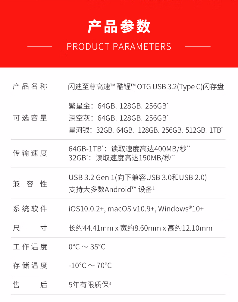 包装清单  :   闪迪(SanDisk)128GB Type-C USB3.2 手机U盘DDC4 读速高达400MB/s 自动备份 手机电脑两用 金属双接口大容量优盘