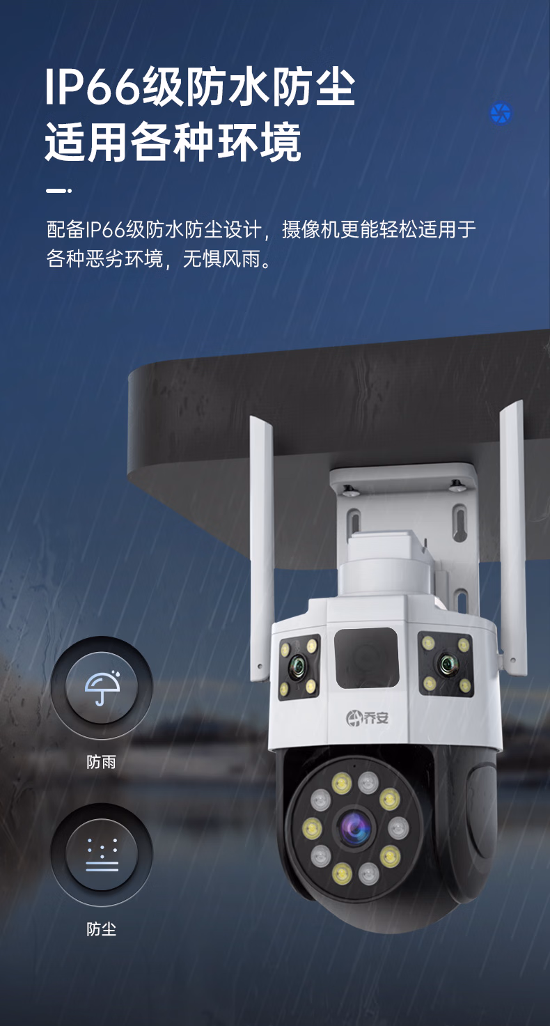 包装清单  :   乔安(JOOAN)双摄1000万摄像头室外监控家用无线wifi网络全彩夜视监控器360度无死角全景云台旋转+128G