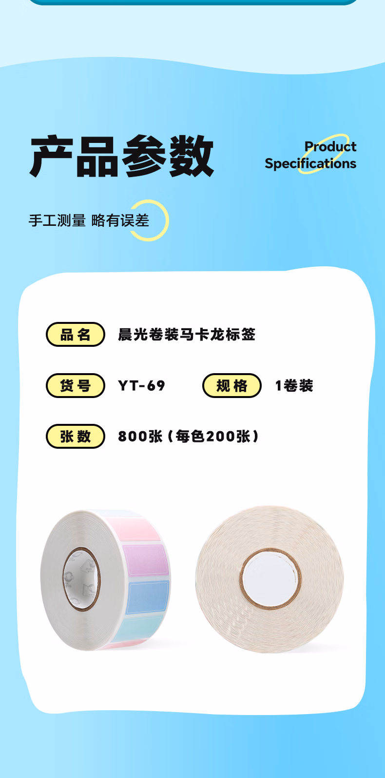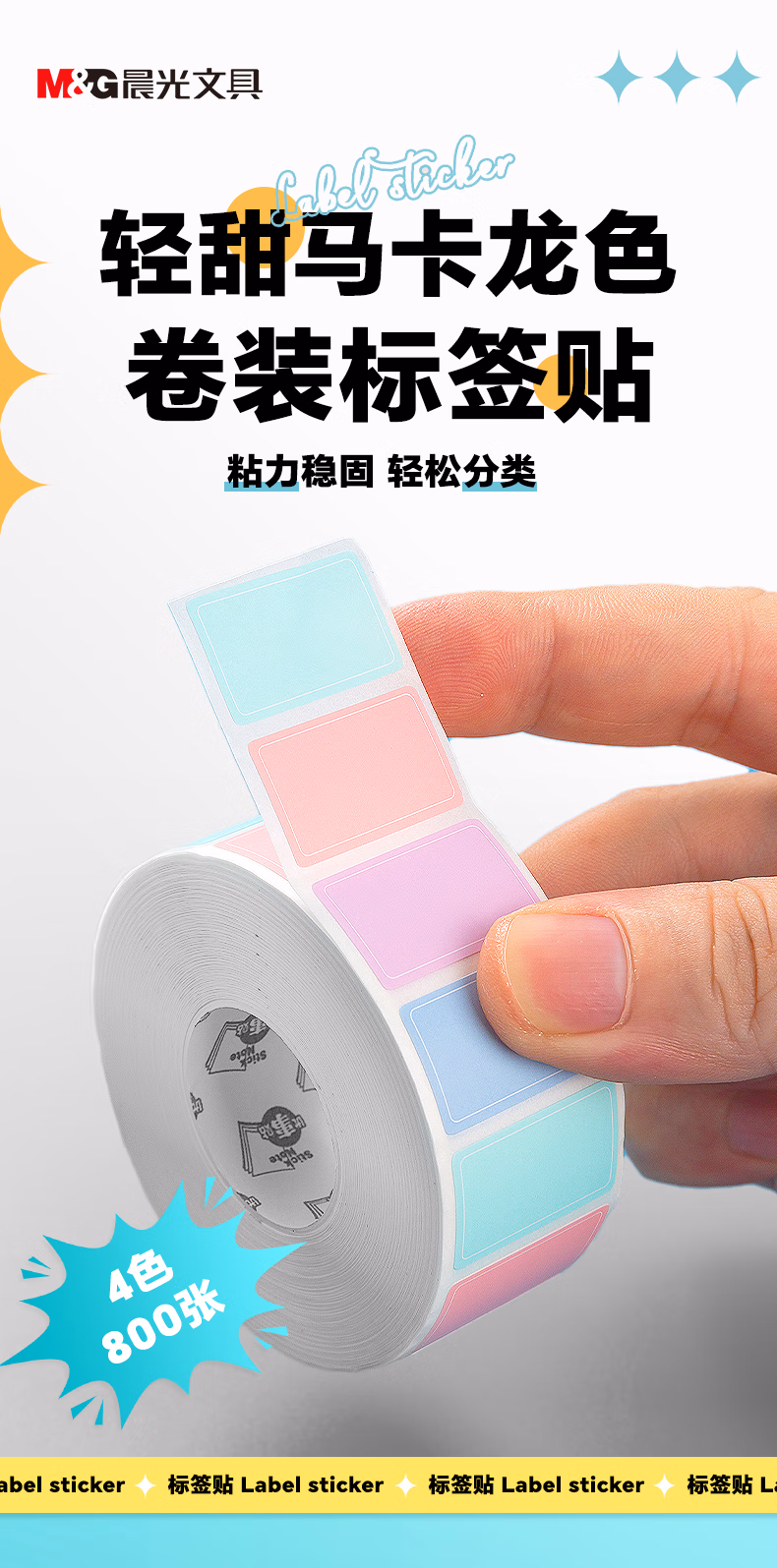 包装清单  :   晨光(M&G)800枚标签贴纸便利贴姓名贴便签纸不干胶自粘性手写文件彩色分类贴小标签标识贴马卡龙色 YT-69