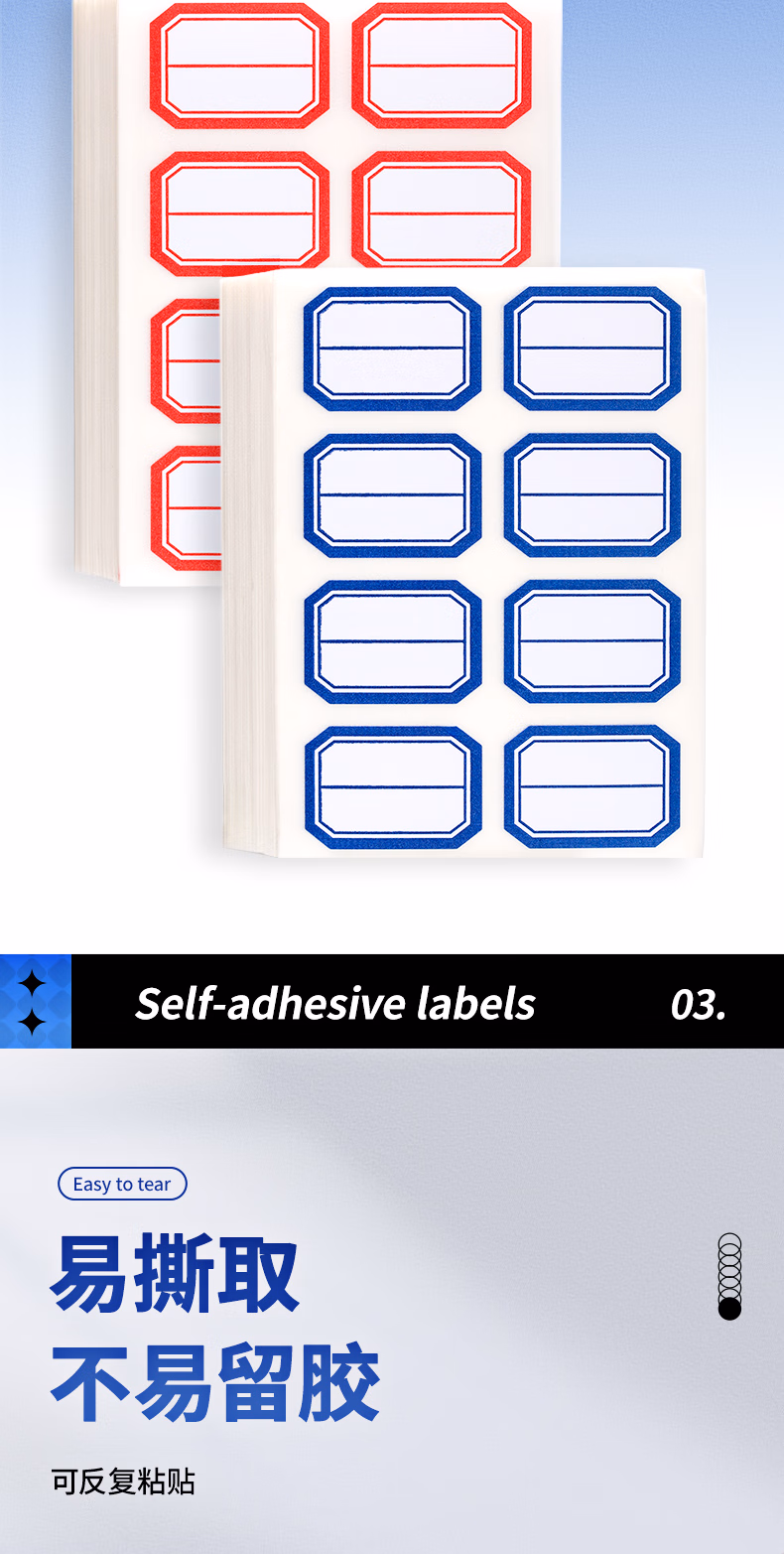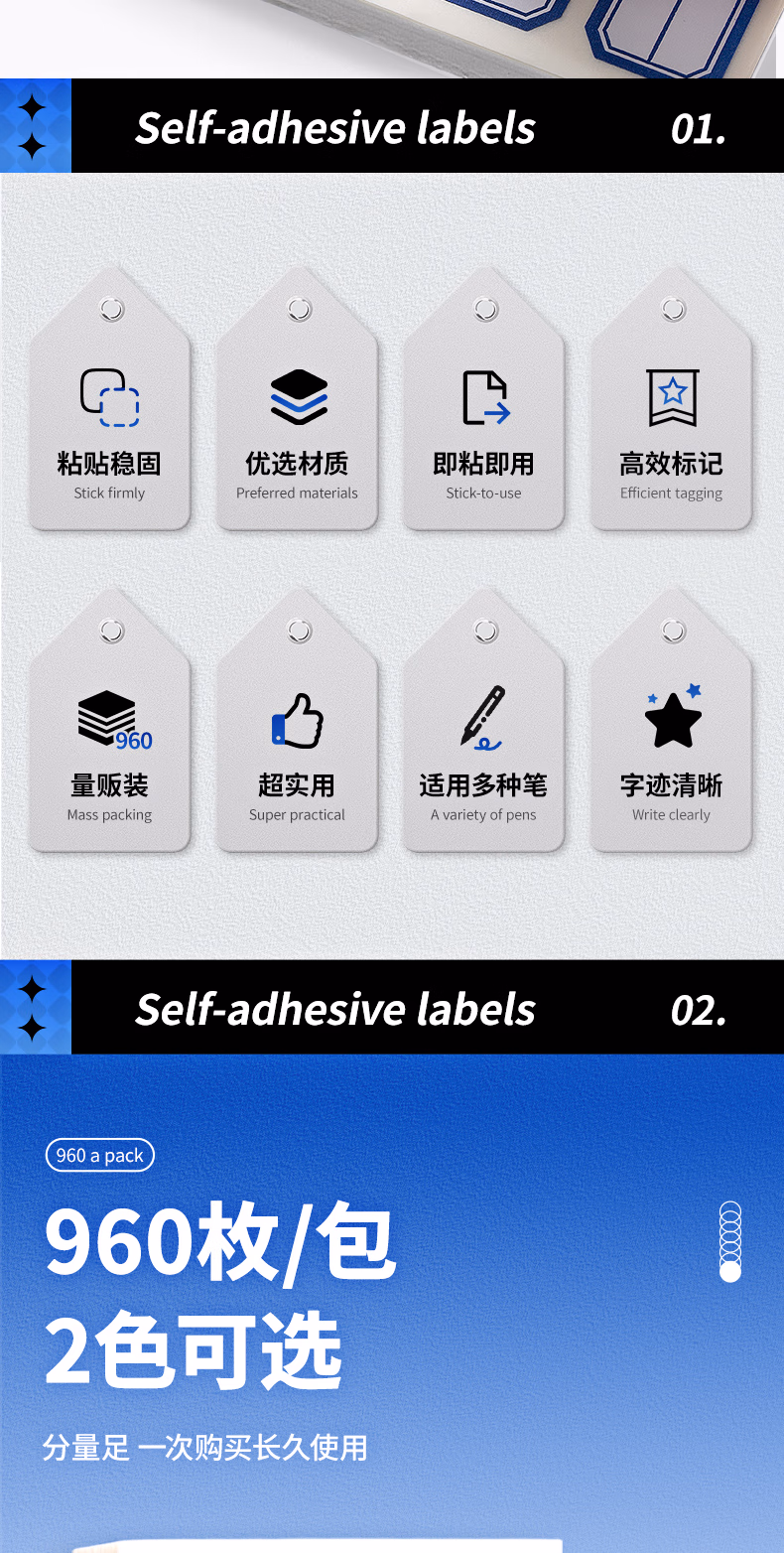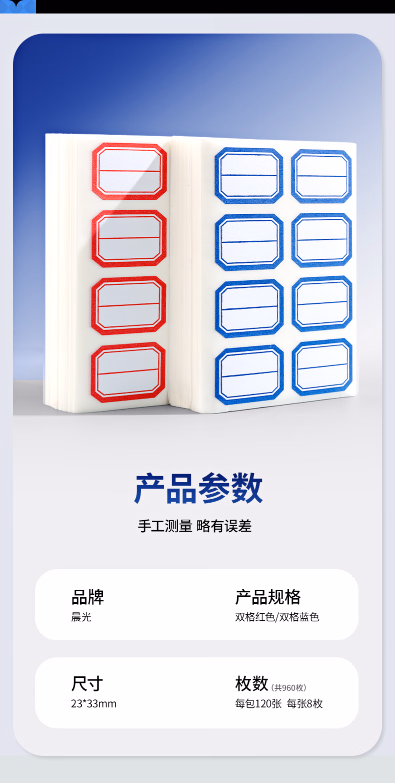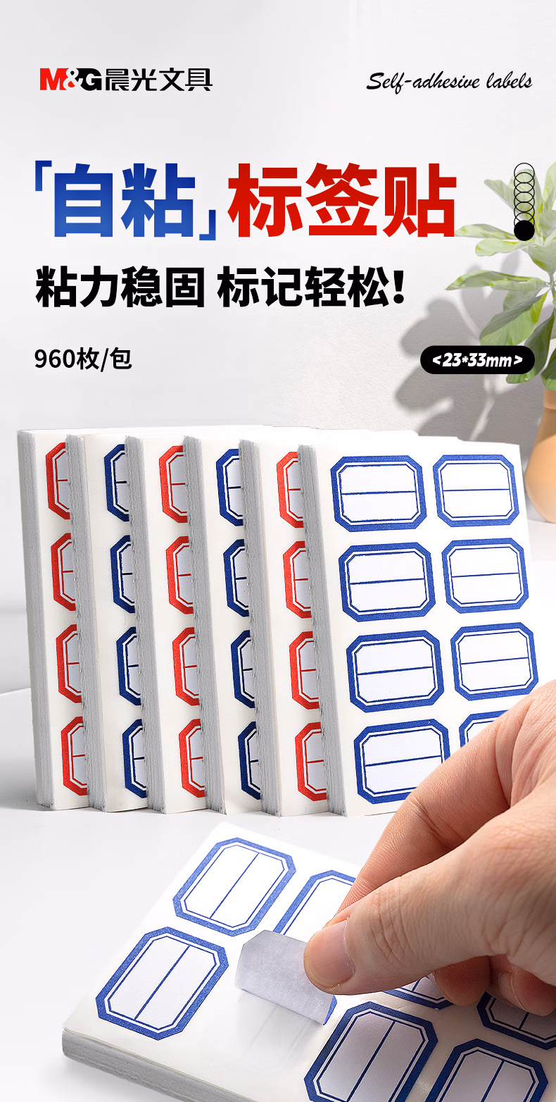 包装清单  :   晨光(M&G)文具23*33mm/960枚蓝自粘不干胶标签贴纸标记便签便利贴口取纸价格名字姓名贴YT-67办公用品