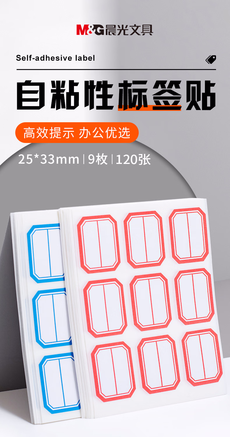 包装清单  :   晨光(M&G)文具25*33mm1080枚红蓝不干胶标签贴纸标记便签便利贴口取纸价格姓名贴12包办公用品YT-12-ZZ