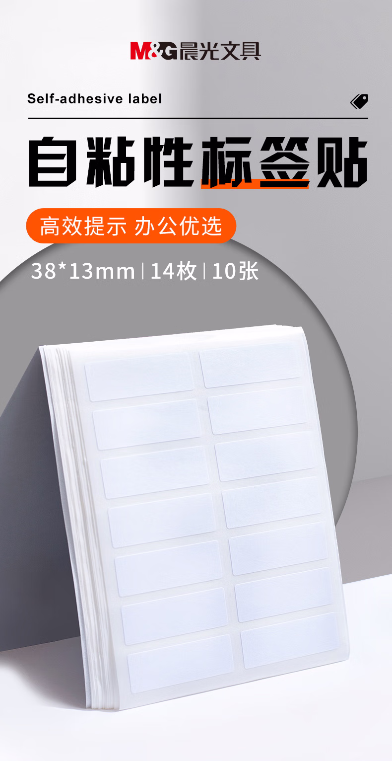 包装清单  :   晨光(M&G)文具38*13mm/140枚自粘不干胶标签贴纸标记便签便利贴口取纸价格姓名贴YT-13办公用品