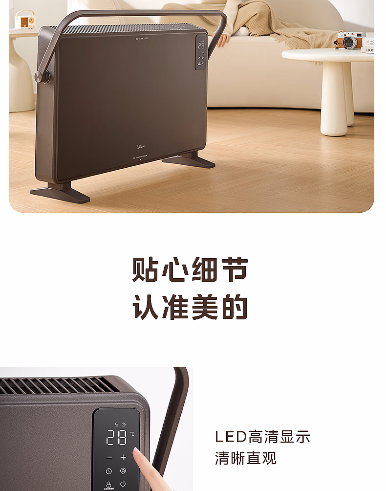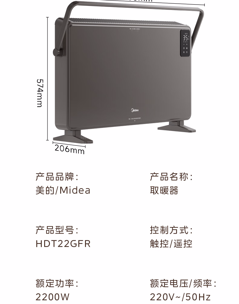 包装清单  :   美的(Midea)【超级单品】取暖器家用暖风机浴室电暖气全屋取暖炉欧式快热炉烤火遥控轻音节能电暖器 HDT22GFR