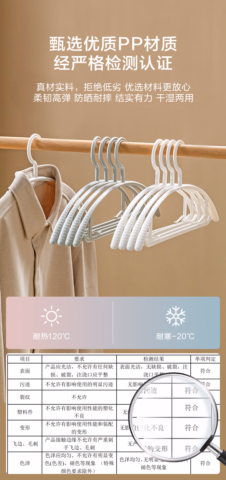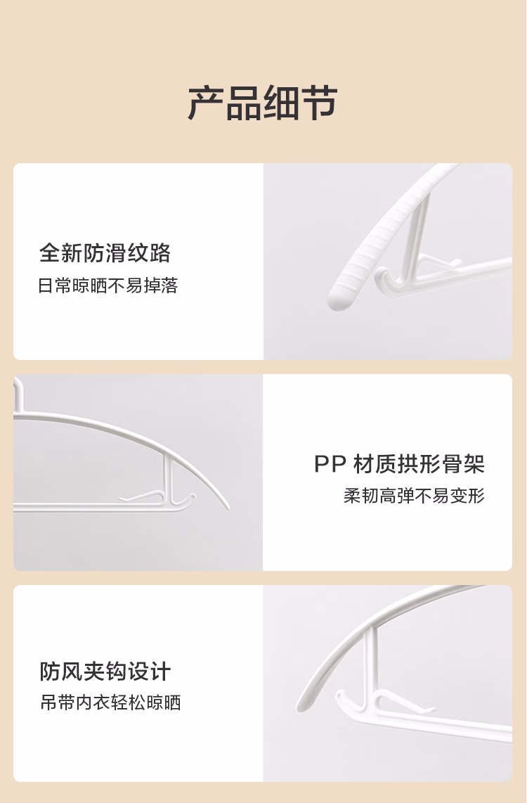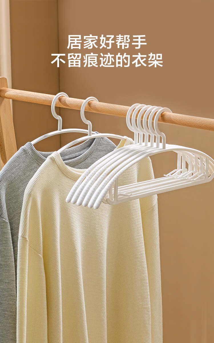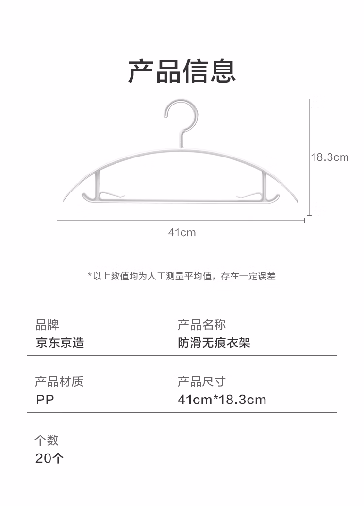 包装清单  :   京东京造 衣架无痕晾衣架子塑料衣挂干湿两用衣撑家用晒衣服架防滑20个白