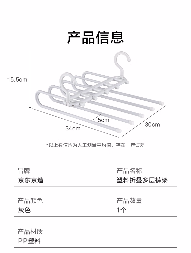 包装清单  :   京东京造 多功能折叠裤架高级灰家用衣柜无痕多层挂裤子衣架收纳神器