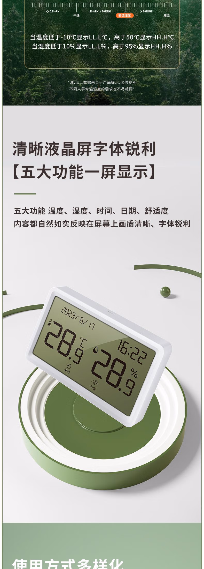 包装清单  :   得力(deli)室内温湿度表 LCD电子温湿度计 婴儿房室内温湿度表 办公用品儿童礼物老人礼品蓝色