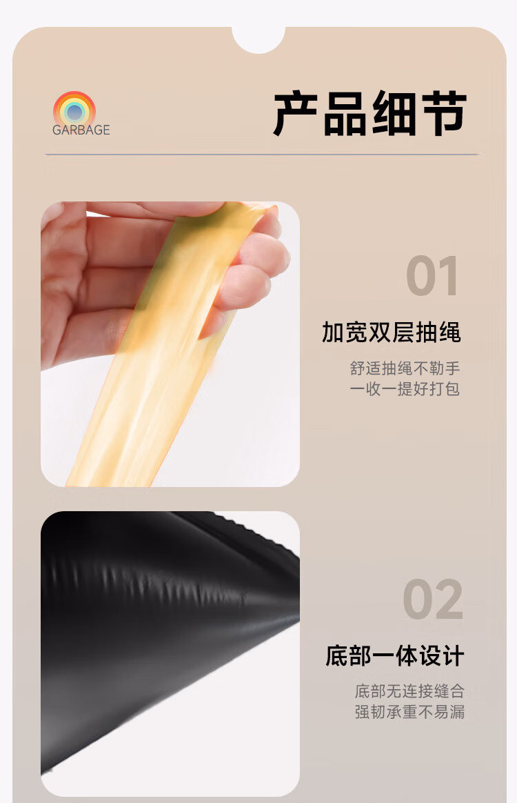 用途  :   抽绳垃圾袋黑色45*50cm150只1丝断点撕家用加厚分类自动收口