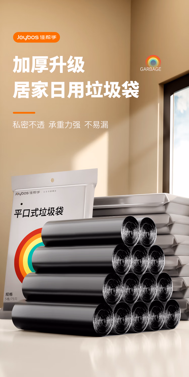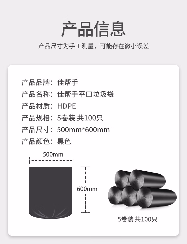 包装清单  :   佳帮手平口垃圾袋黑色50*60cm300只0.8丝加大号断点撕取家用分类