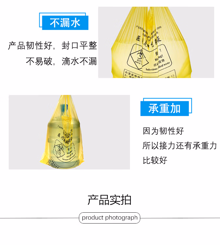 用途  :   加厚黄色医疗垃圾袋 【100个】背心式塑料袋 医疗诊所废物垃圾袋 手提式 32*38cm