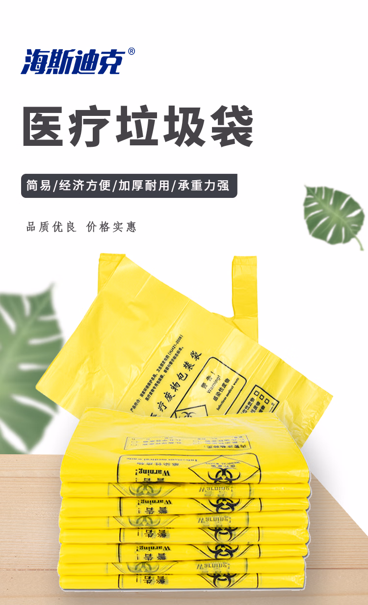 包装清单  :   海斯迪克 HKY-86 加厚黄色医疗垃圾袋 【100个】背心式塑料袋 医疗诊所废物垃圾袋 手提式 32*38cm