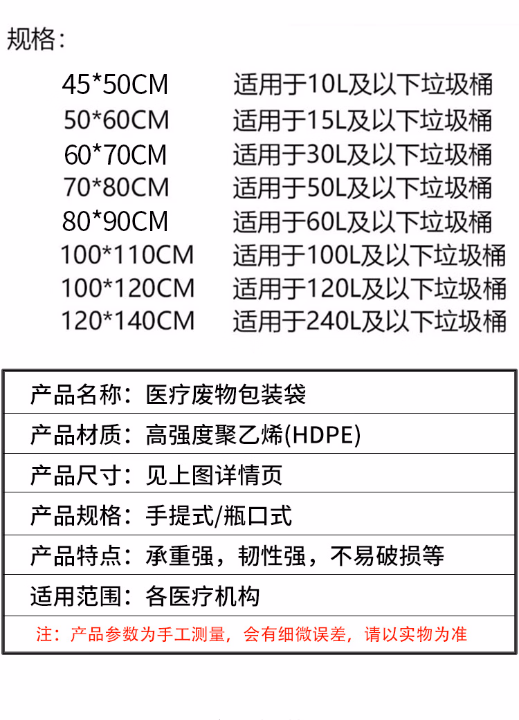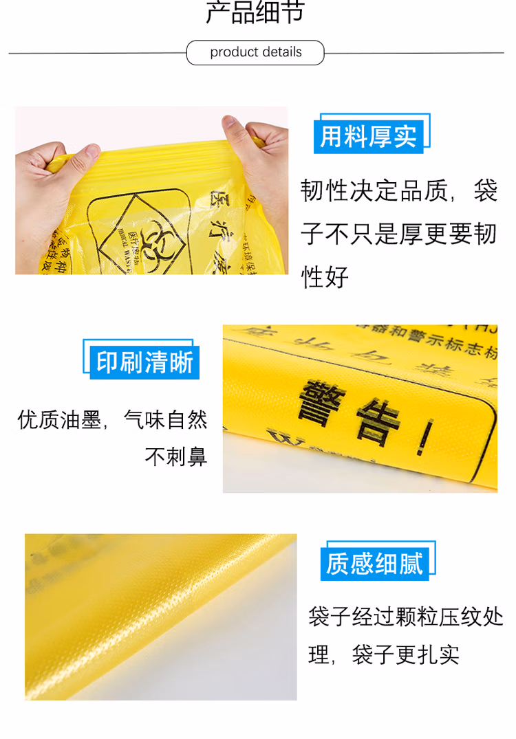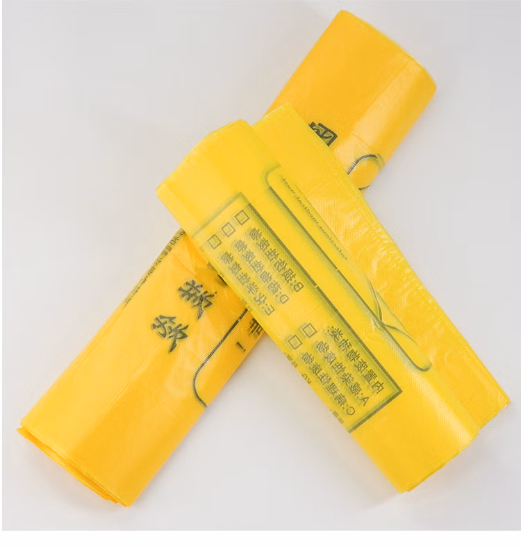 包装清单  :   加厚黄色医疗垃圾袋 【100个】背心式塑料袋 医疗诊所废物垃圾袋 手提式 60*70cm
