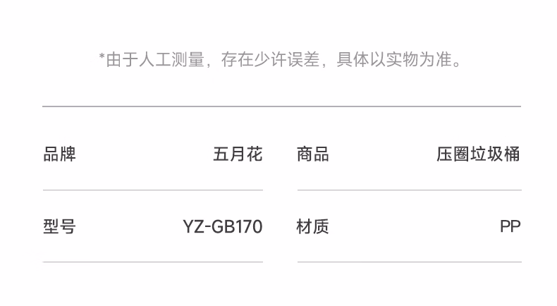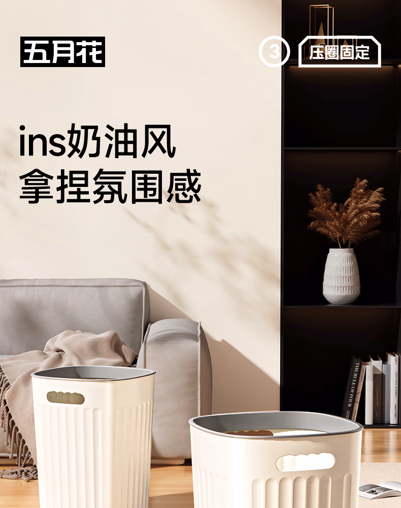 包装清单  :   五月花手提压圈垃圾桶大号12L奶黄家用客厅厨房卫生间厕所家用垃圾桶