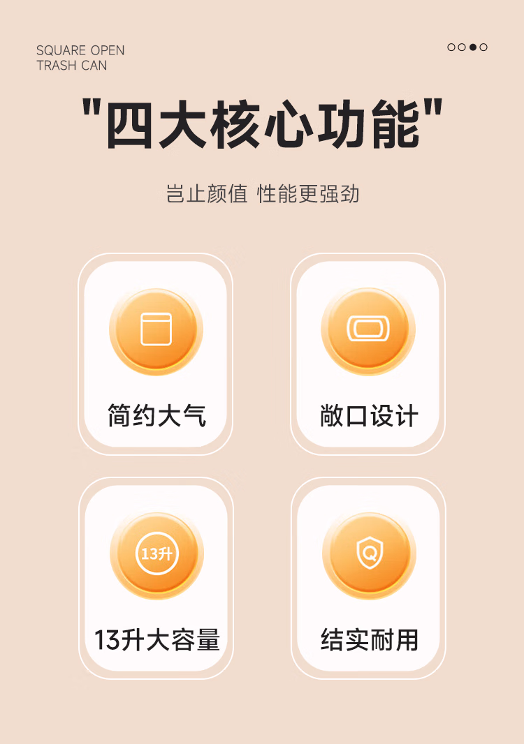 用途  :   客厅垃圾桶13L高颜值无盖大号办公室家用厨房卫生间厕所网红桶