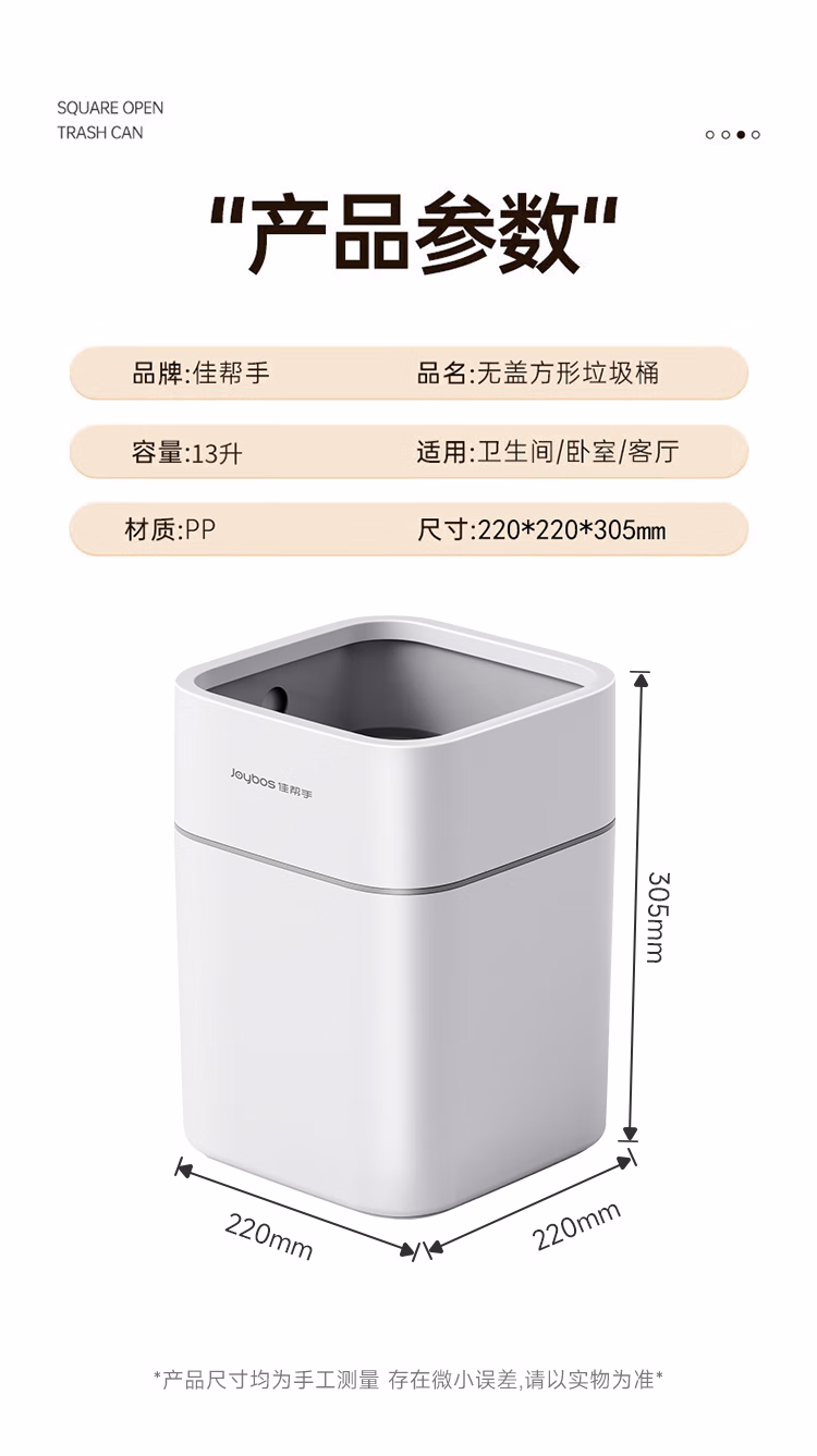 包装清单  :   佳帮手客厅垃圾桶13L高颜值无盖大号办公室家用厨房卫生间厕所网红桶