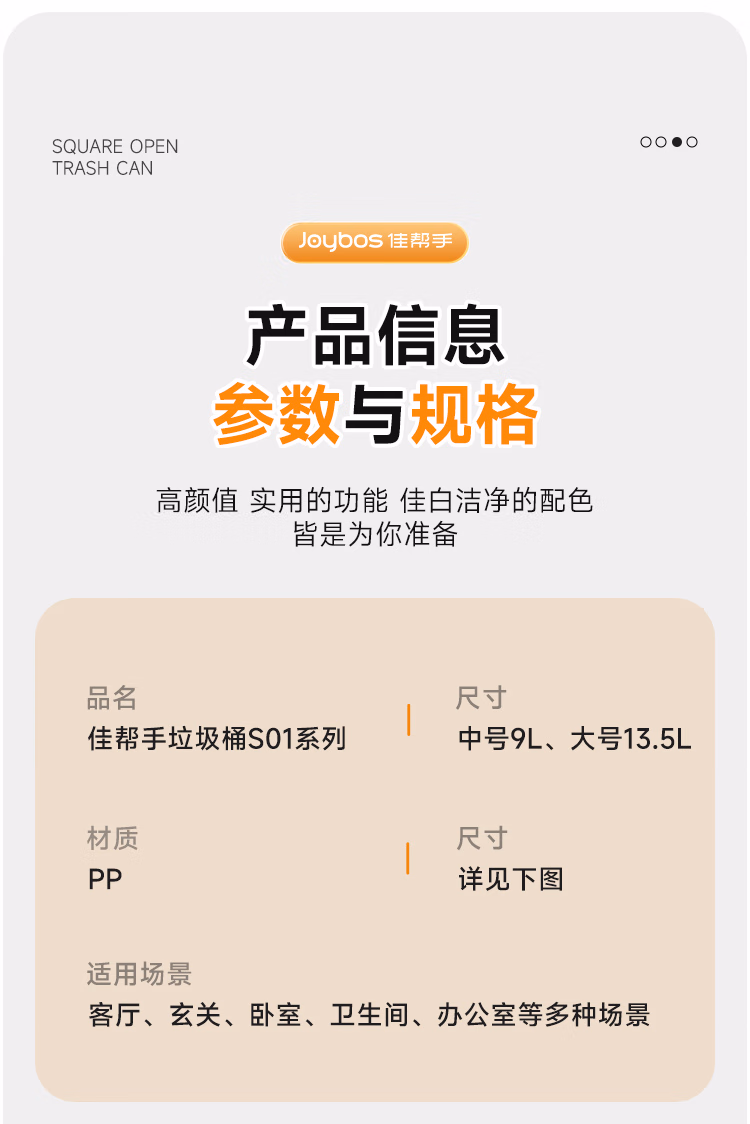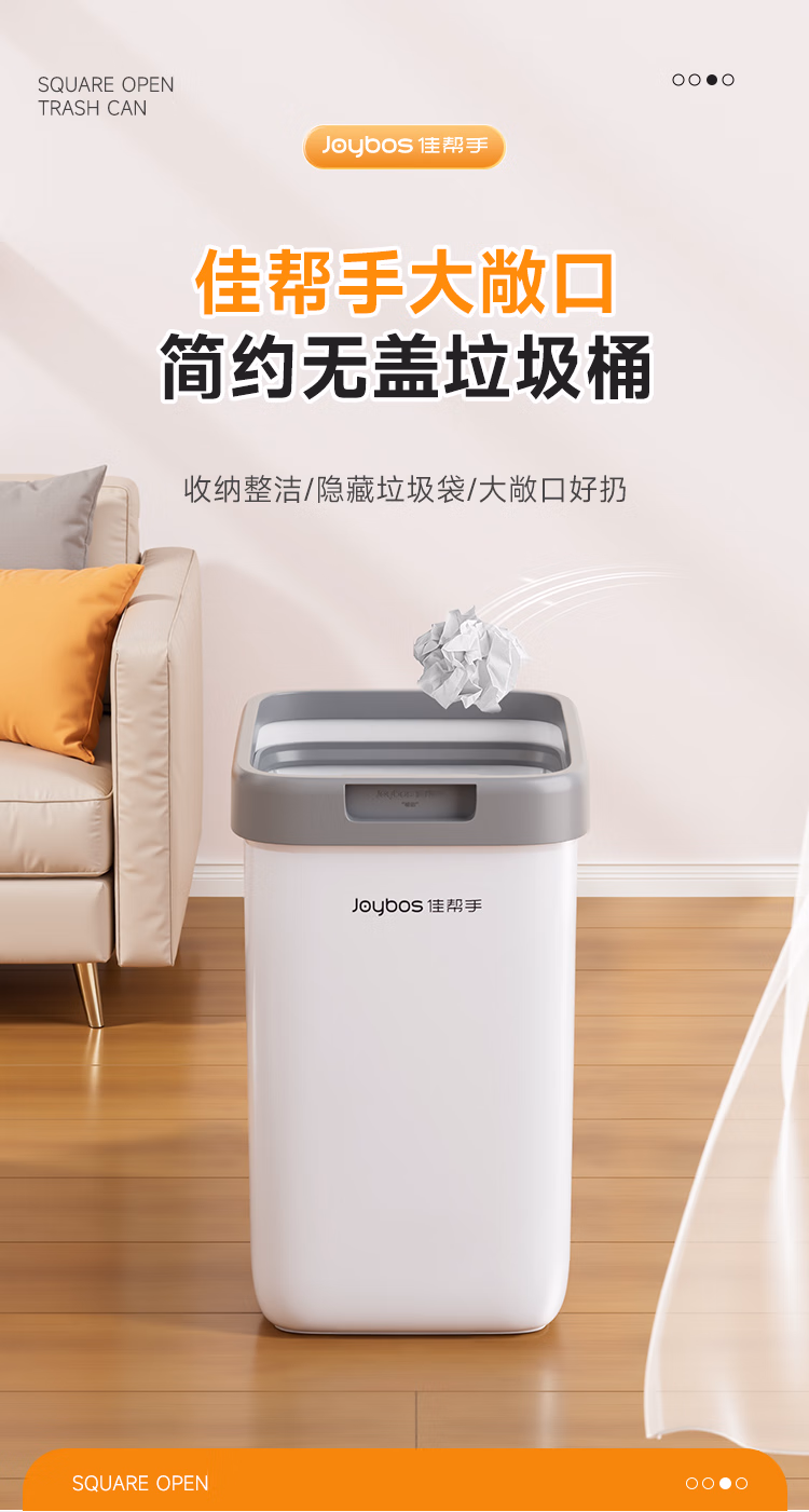 包装清单  :   佳帮手无盖垃圾桶13.5L大号办公室宿舍家用客厅厨房卫生间压圈网红纸篓