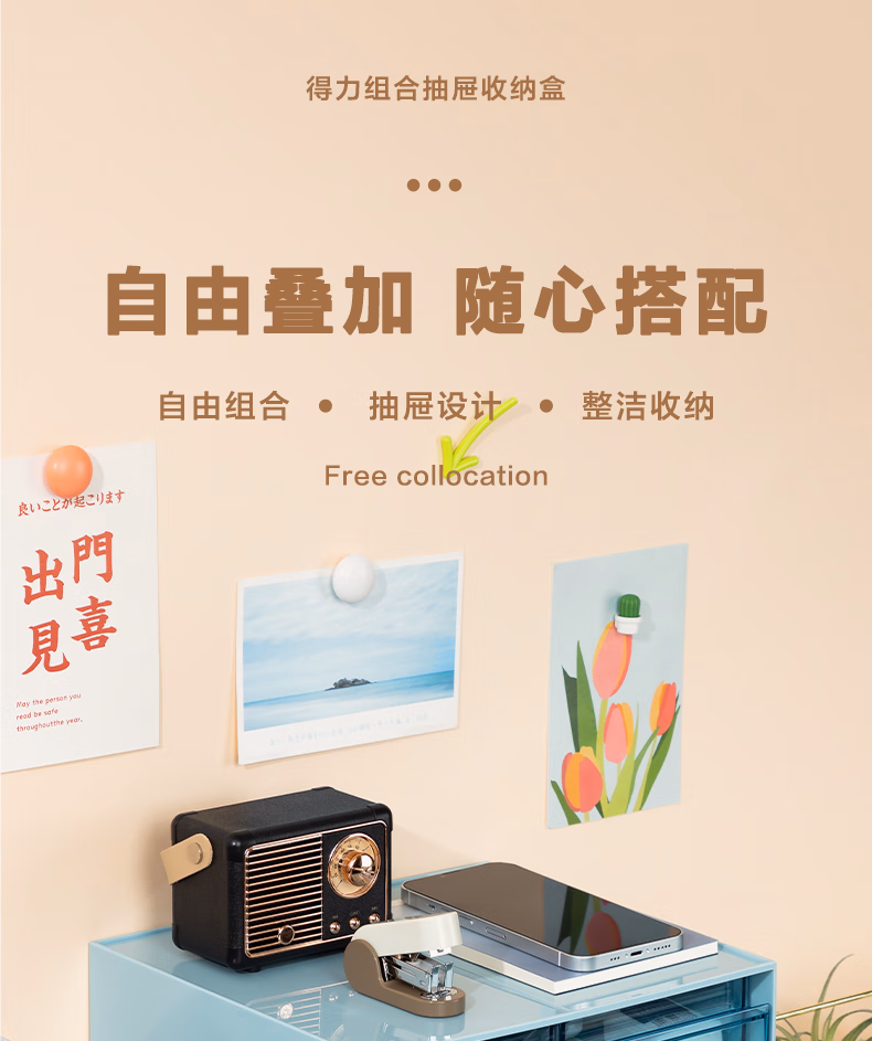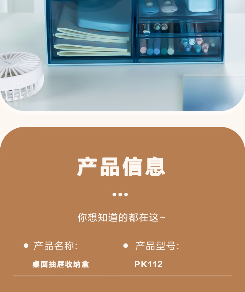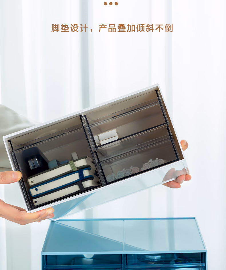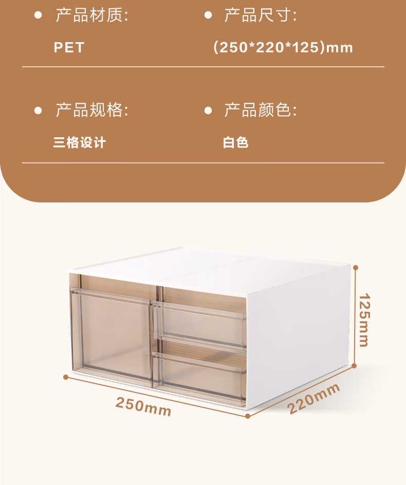 包装清单  :   得力三格桌面收纳盒 抽屉式办公室书桌用品文具文件分类多层储物盒宿舍化妆品首饰整理盒白色PK112
