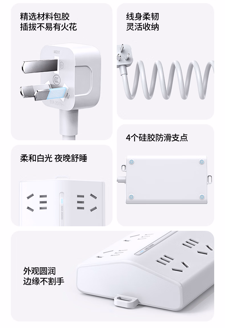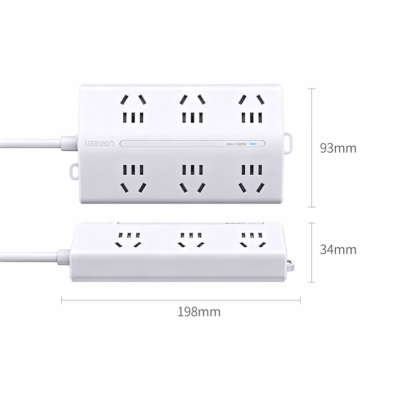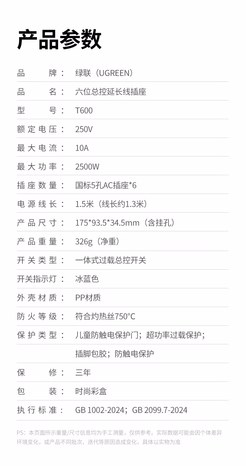 包装清单  :   绿联T600梯形排插新国标插排/插座/插线板/接线板过载保护宿舍桌面家用办公拖线板6位总控开关1.5米