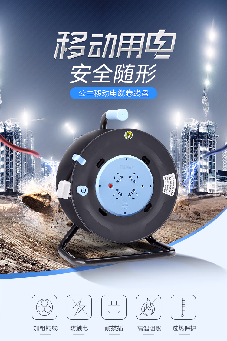 包装清单  :   公牛(BULL)GN-804 4位50米工程接线盘/新升级过热保护电缆卷盘插座/插排