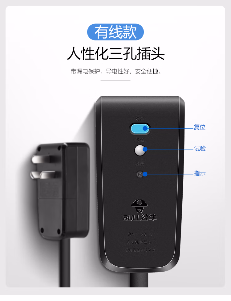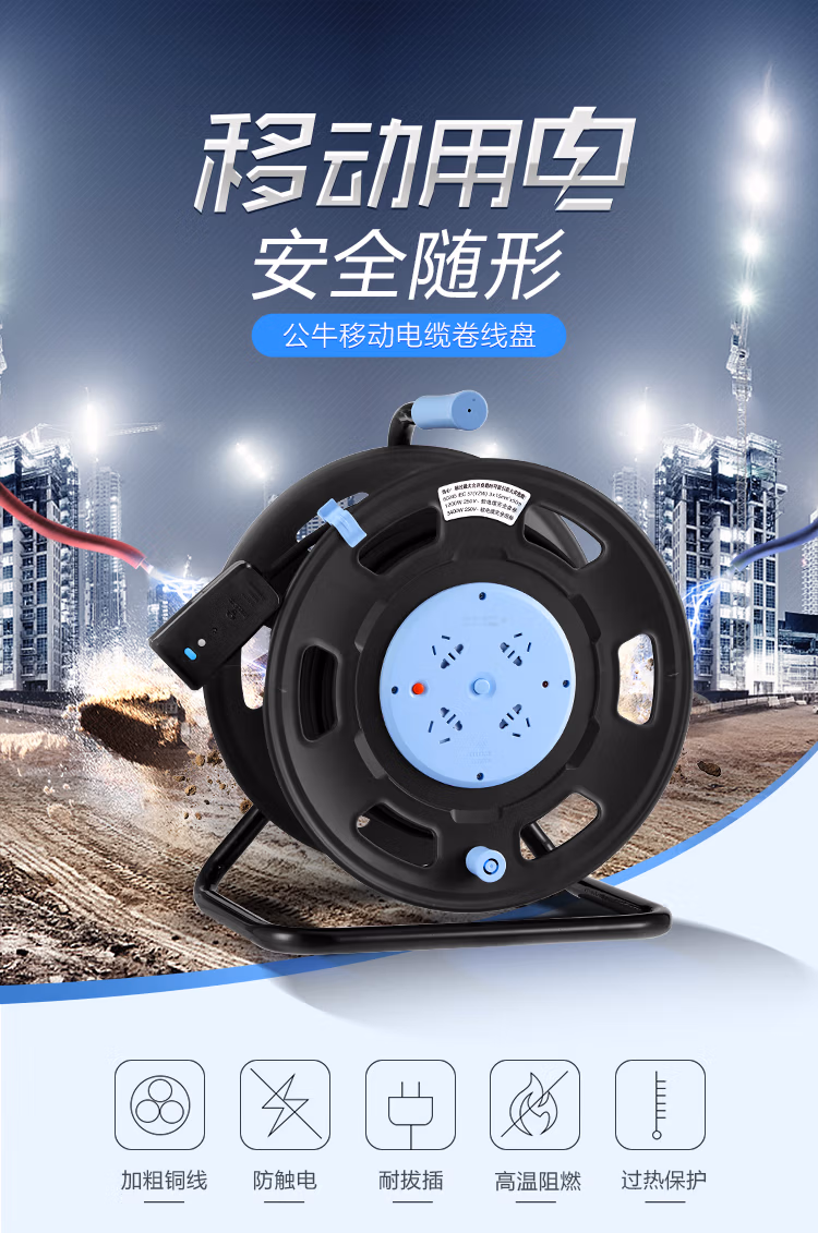 包装清单  :   公牛(BULL)过热保护漏电保护16A大功率电缆卷盘插座/插排GN-806DN 4位50米线粗2.5平方毫米工程