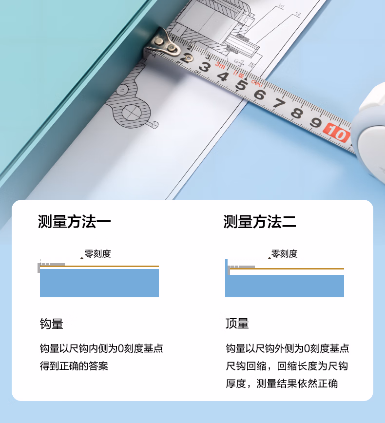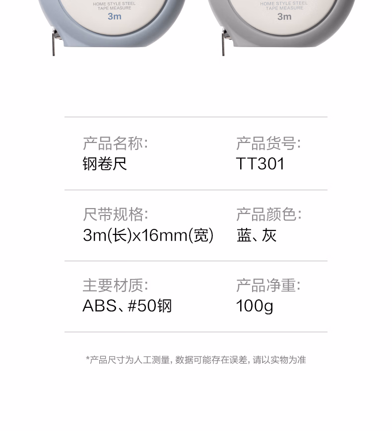 包装清单  :   力(deli)【得力时尚新品】3m自锁钢卷尺 盒尺/米尺/鲁班尺/量尺/钢尺 装修测量工具 TT301蓝