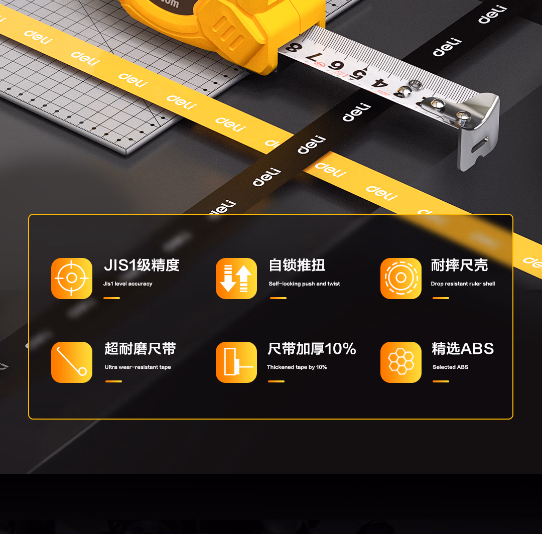 包装清单  :   得力(deli)5米钢卷尺盒尺木工尺伸缩尺米尺公制装修测量塑壳尺子一级精度