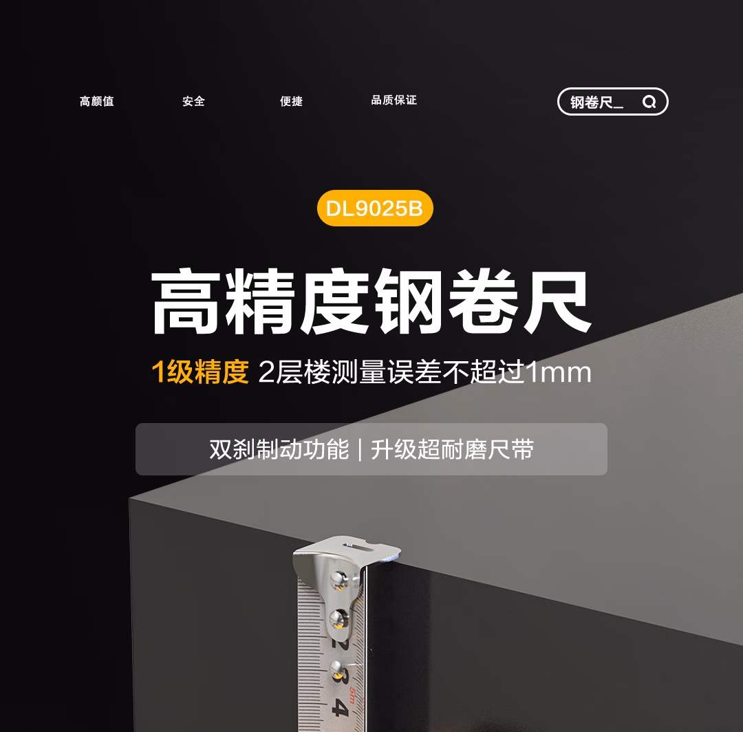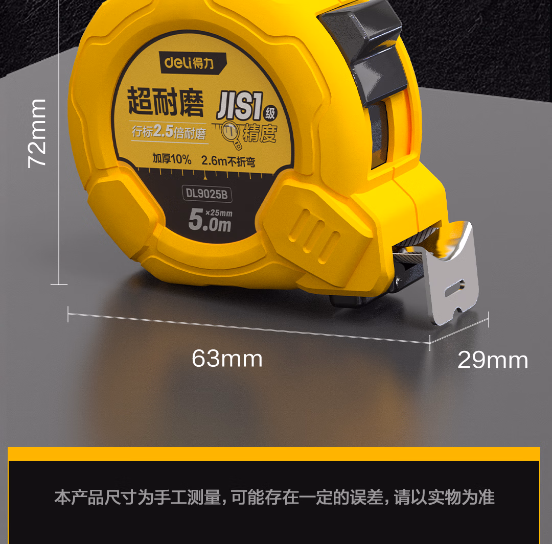 包装清单  :   得力(deli)5米钢卷尺盒尺木工尺伸缩尺米尺公制装修25mm宽测量一级精度