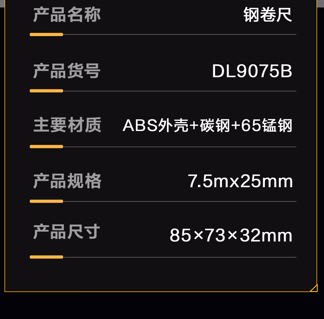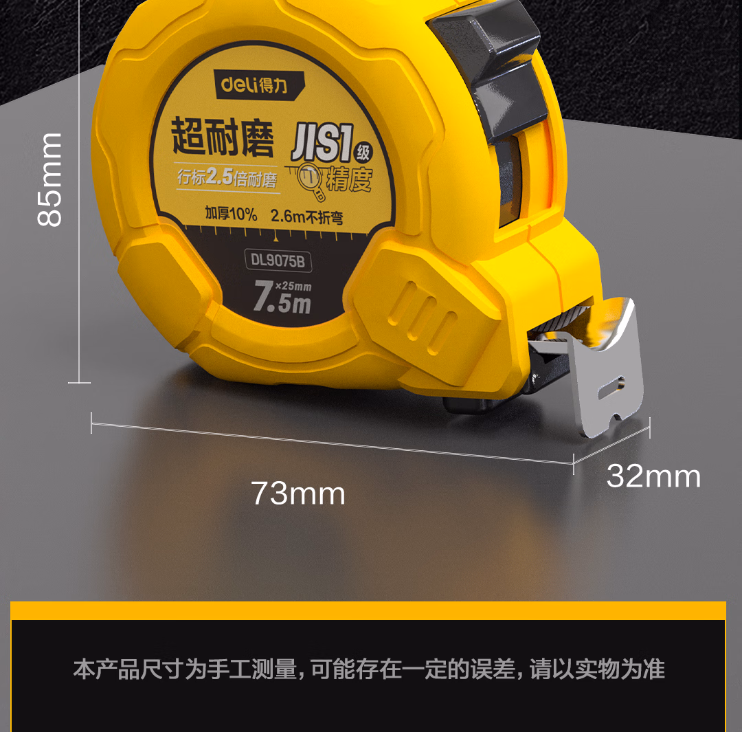 包装清单  :   得力(deli)7.5米钢卷尺盒尺木工尺伸缩尺米尺公制装修25mm宽尺子一级精度