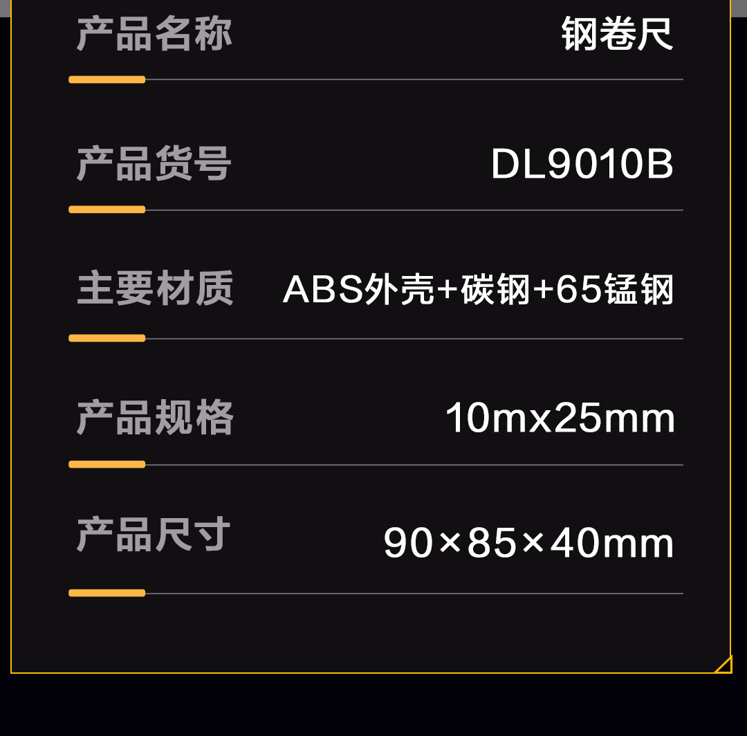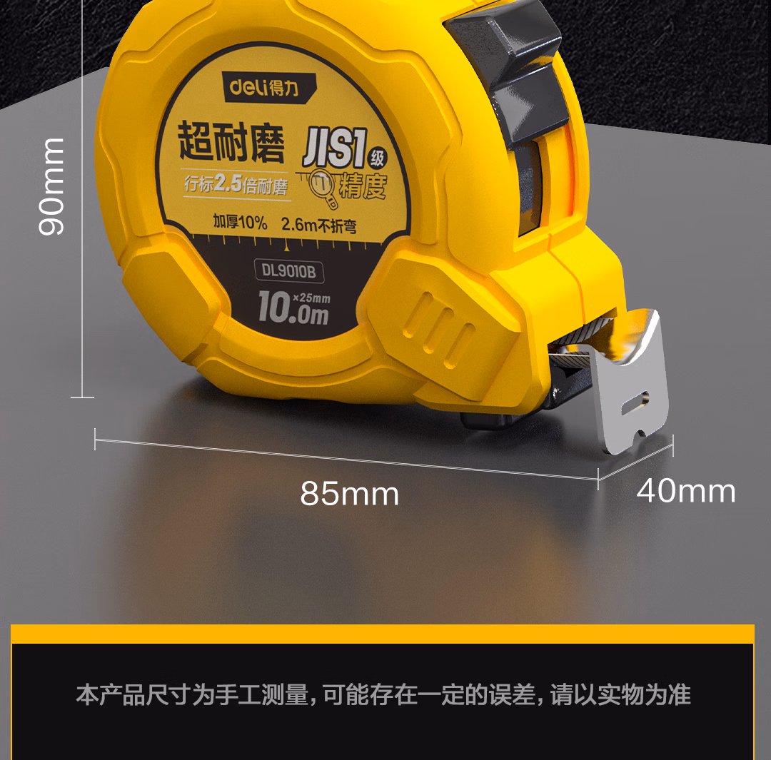 包装清单  :   得力(deli)钢卷尺盒尺木工尺伸缩尺米尺公制装修10m*25mm尺子一级精度