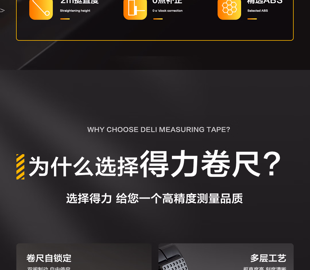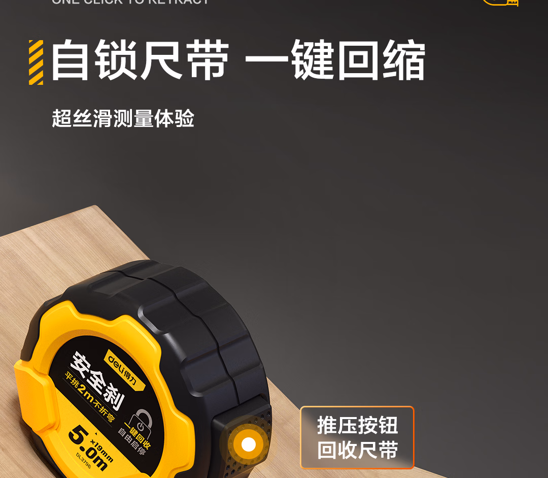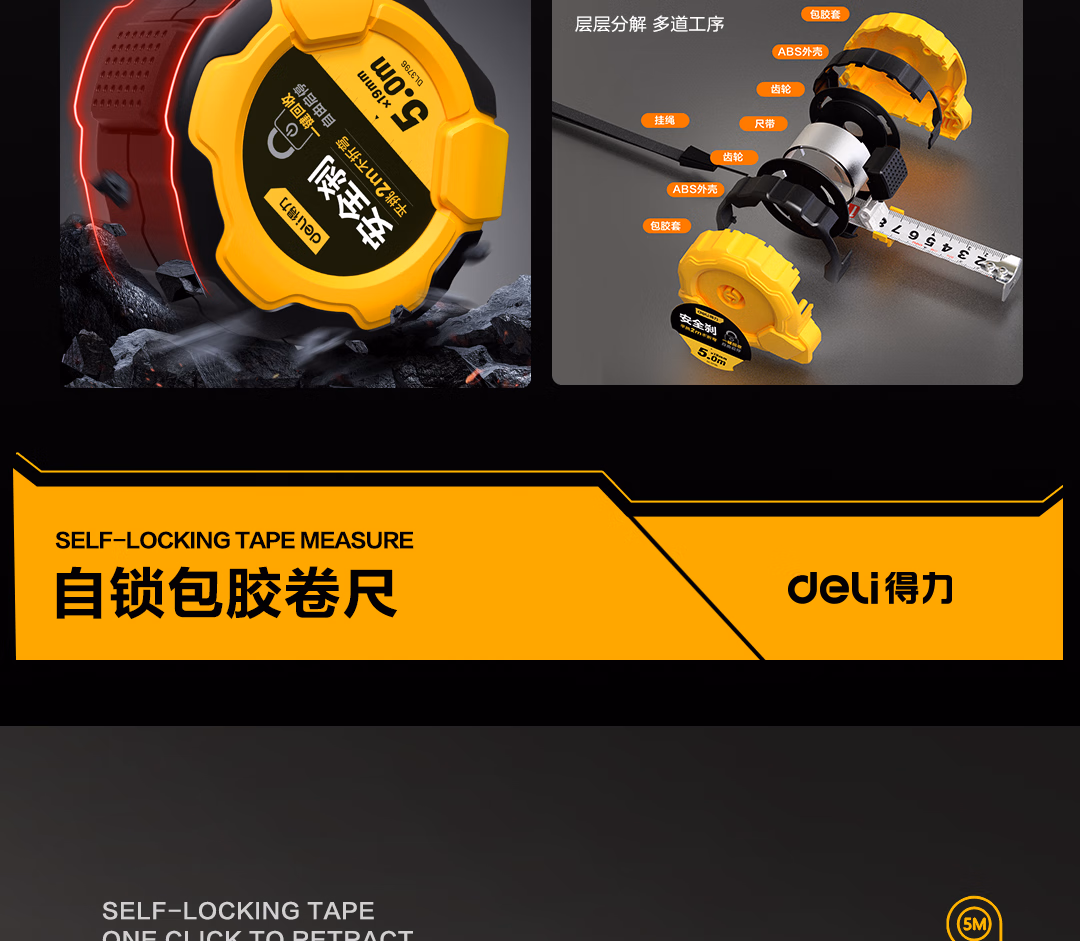 包装清单  :   得力(deli)卷尺钢卷尺包胶自锁尺子盒尺伸缩尺米尺工地卷尺木工尺5米