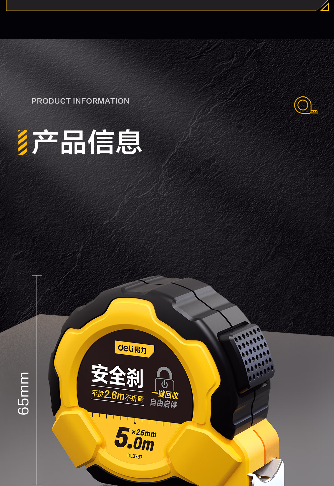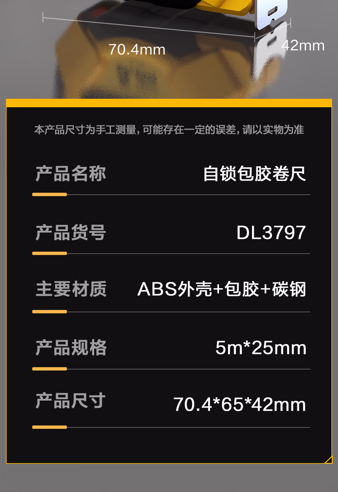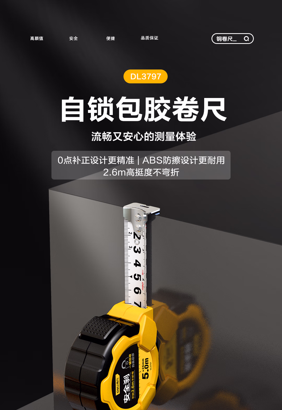 包装清单  :   得力(deli)卷尺包胶自锁钢卷尺盒尺伸缩尺米尺工地卷尺防割手木工尺子5米