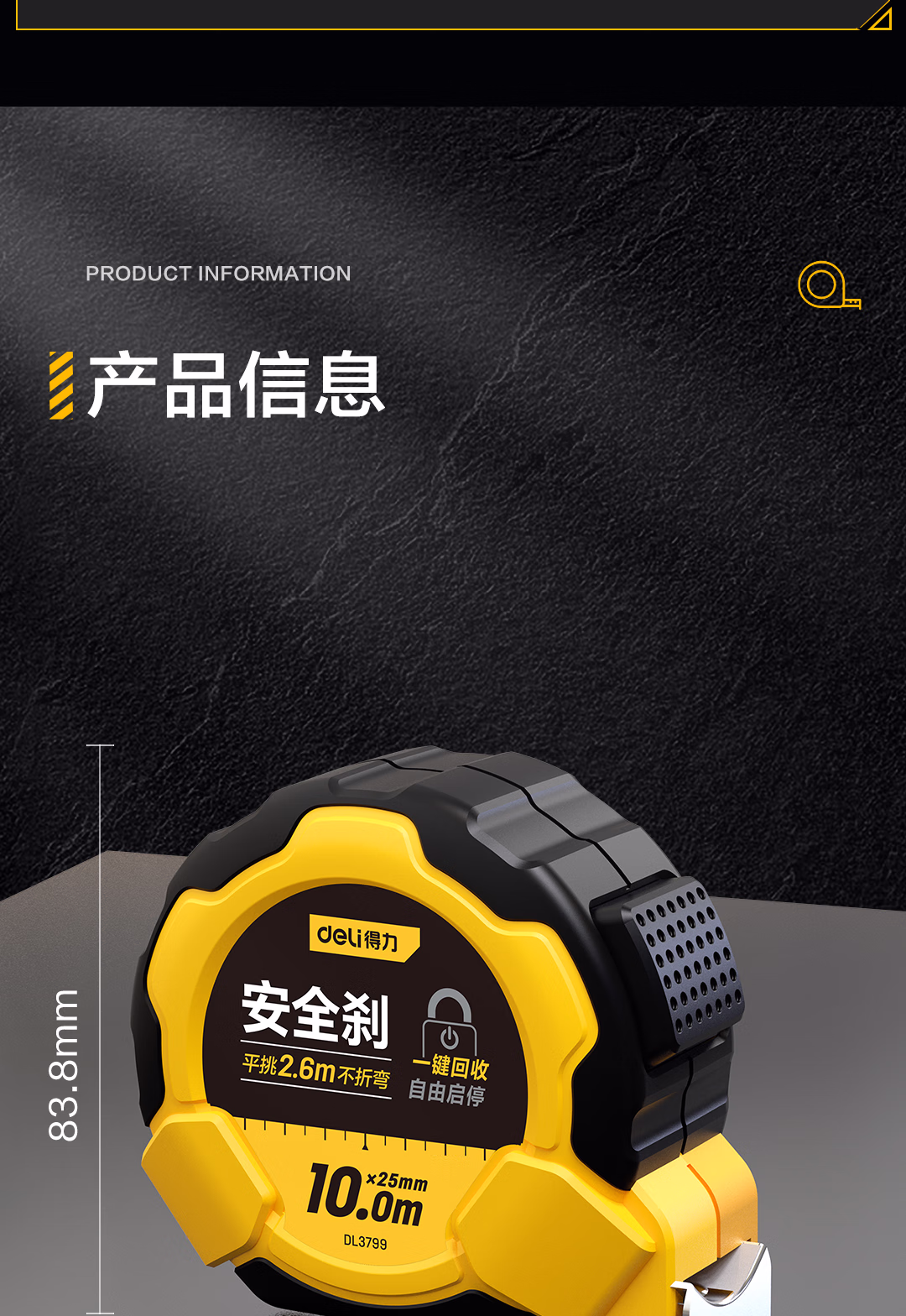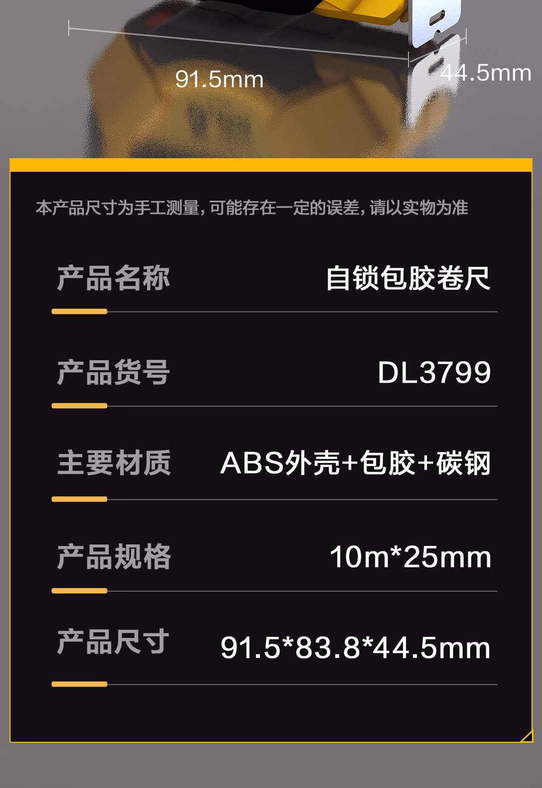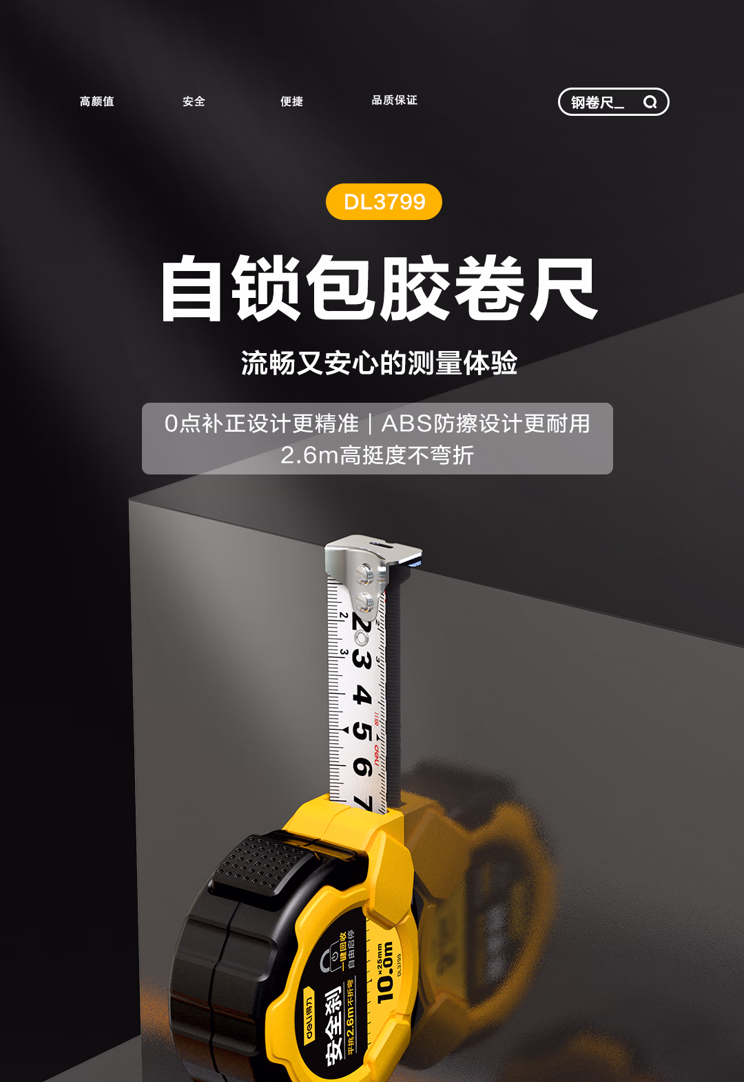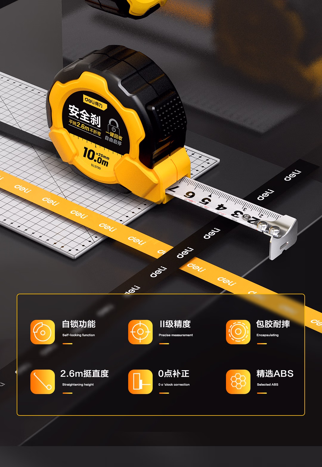 包装清单  :   得力(deli)卷尺钢卷尺包胶自锁盒尺伸缩尺米尺工地卷尺防割手木工尺10米