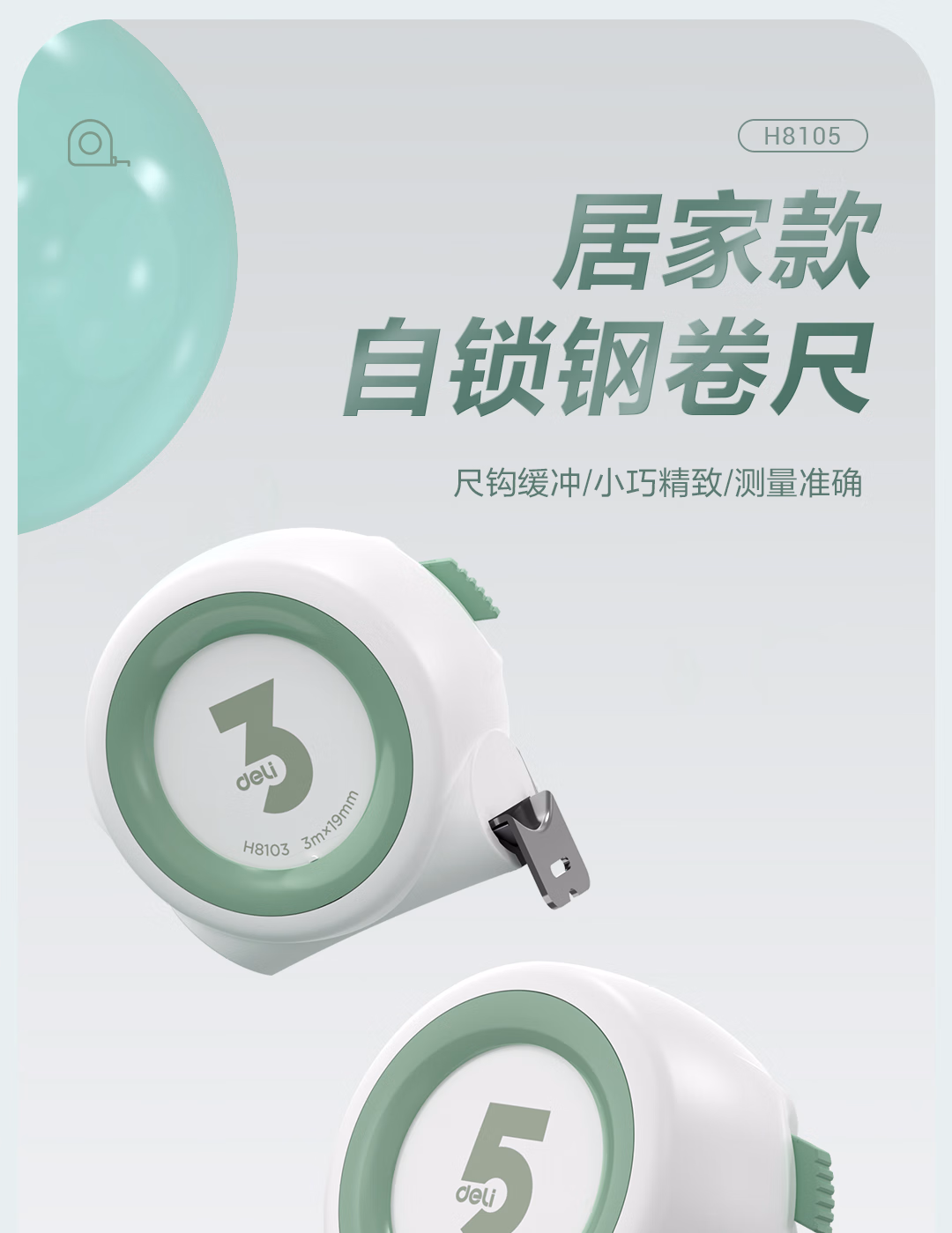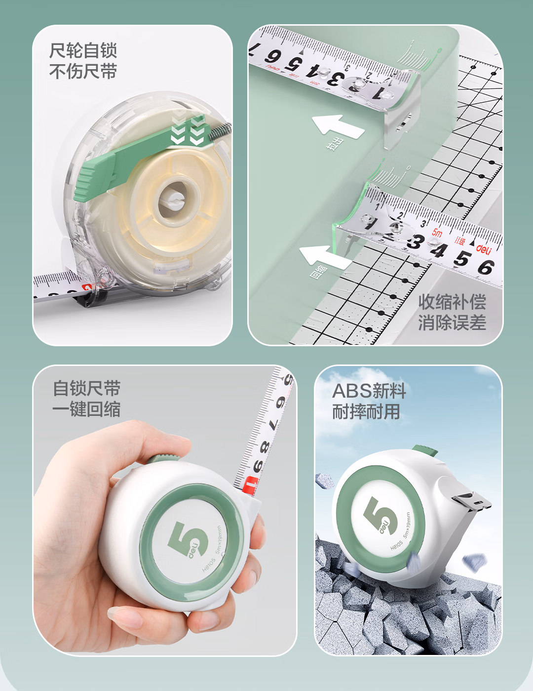 包装清单  :   得力(deli)自锁卷尺钢卷尺盒尺伸缩尺拉尺木工尺子钢尺测量工具家居系列5m