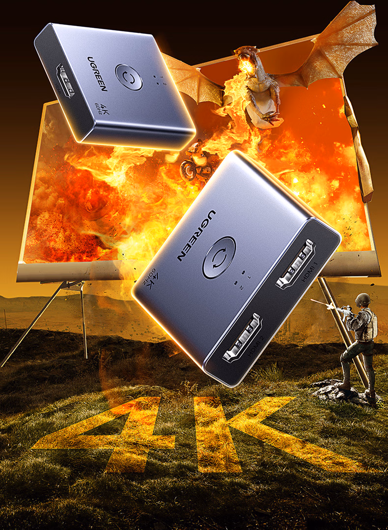 包装清单  :   绿联HDMI2.0双向切换器二进一出4K60Hz高清一拖二1分2笔记本电脑主机拓展接显示器投影电视分屏器55006
