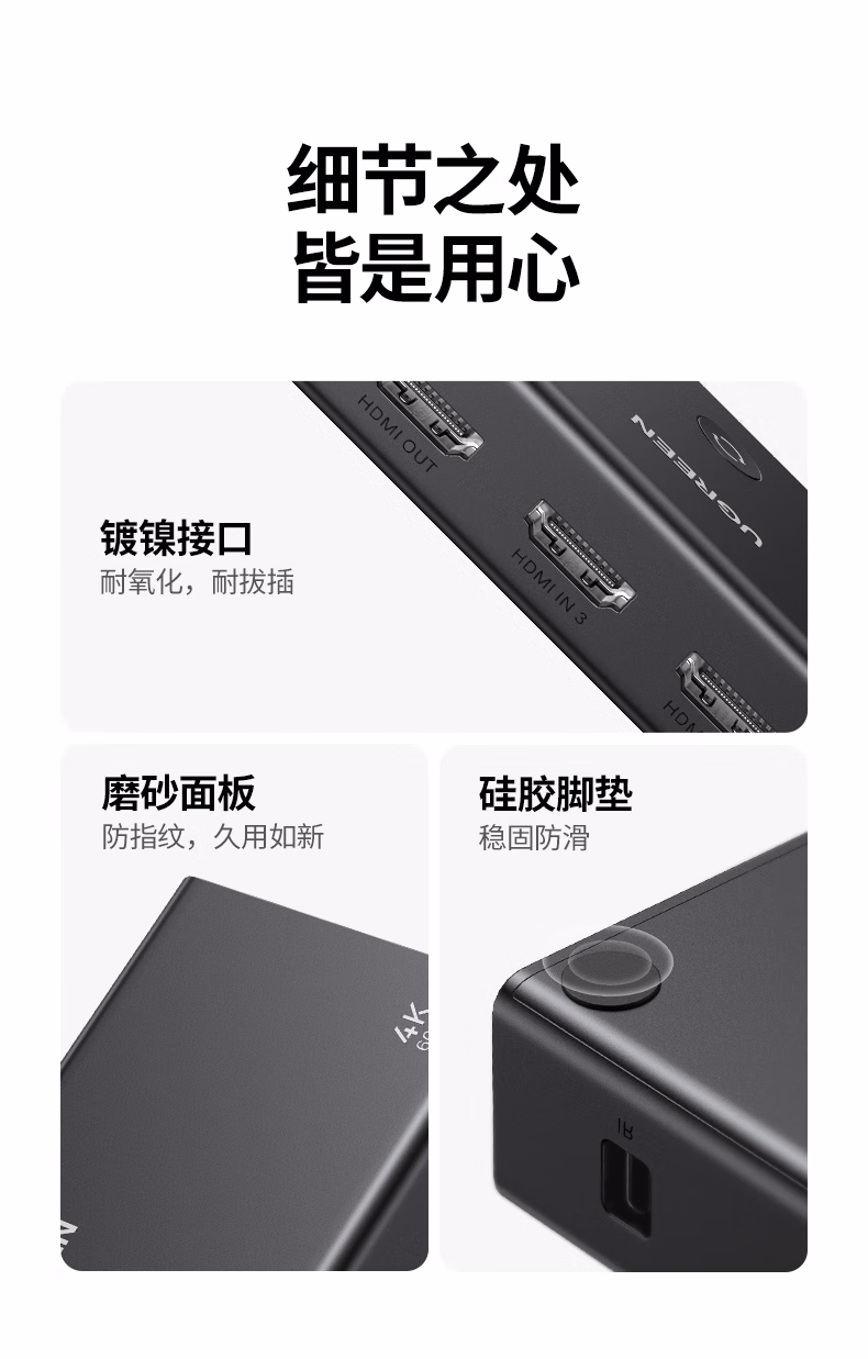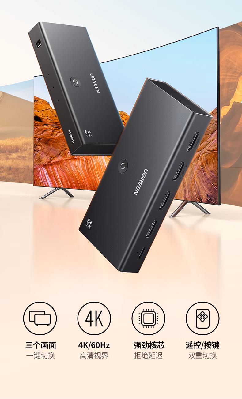 包装清单  :   绿联HDMI2.0切换器3进1出4K60Hz三进一出视频切屏器笔记本台式机接电视显示器投影仪兼容二进一出90800