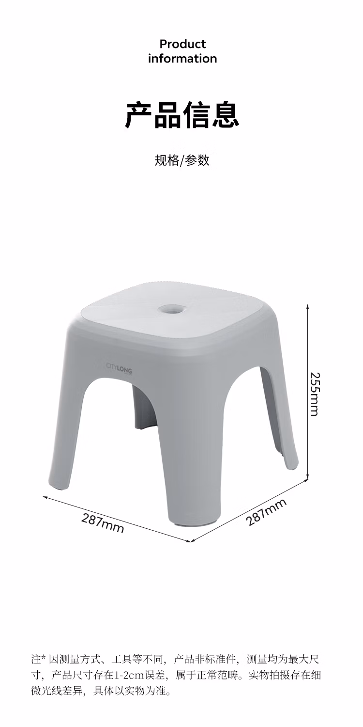 包装清单  :   禧天龙塑料凳子家用休闲椅子加厚防滑凳板凳方凳换鞋凳D-2127冰河灰