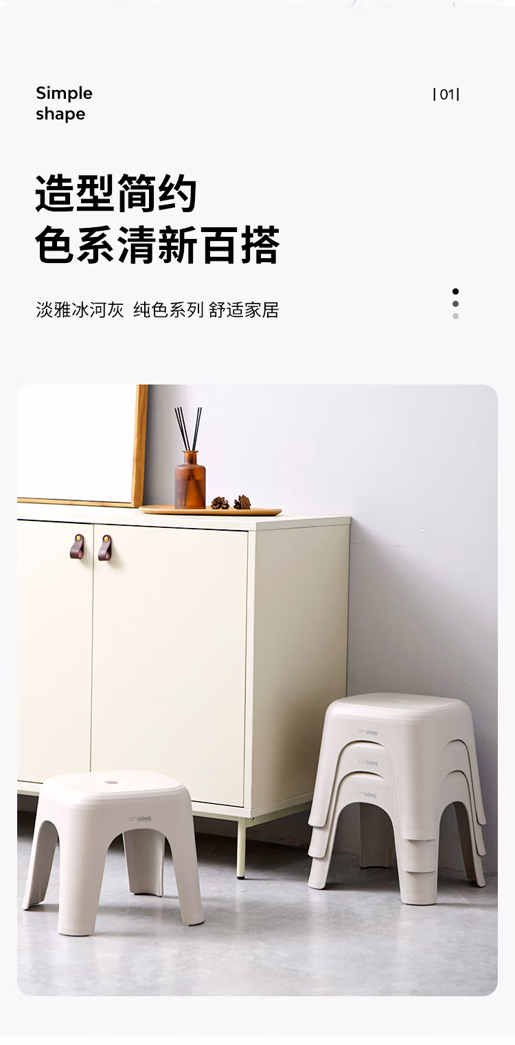 用途  :   塑料凳子家用休闲椅子加厚防滑凳板凳方凳换鞋凳D-2127冰河灰